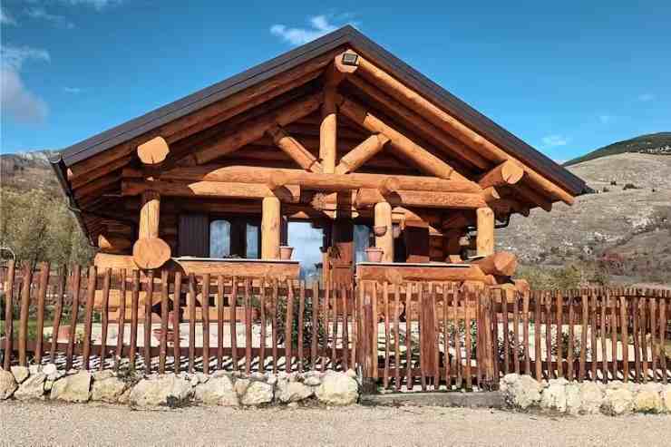 Lo chalet di 40 mq è costruito con tronchi in legno stile canadese ed è uno dei più amati dagli utenti di AirBnB. Per un soggiorno in montagna è sicuramente da prendere in considerazione. Nelle vicinanze c’è Ovindoli e il castello di Celano, tra i castelli più belli in Abruzzo.
