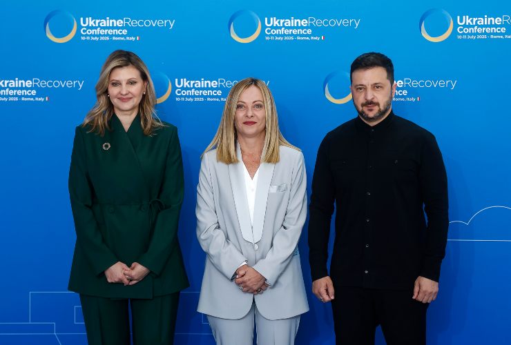 Via al Centro Congressi La Nuvola di Roma la “Conferenza per la Ripresa dell’Ucraina” co-organizzata dai governi italiano e ucraino. Sono circa 5.000 i partecipanti, fra cui circa 100 delegazioni governative e 40 di Organizzazioni Internazionali. Con un abbraccio a Volodymir Zelensky e una stretta di mano con la moglie Olena Zelenska, la premier Giorgia Meloni ha accolto il presidente ucraino e la first lady alla Conferenza sulla ricostruzione dell’Ucraina, a cui partecipano circa cinquanta fra capi di Stato e di governo, o ministri.