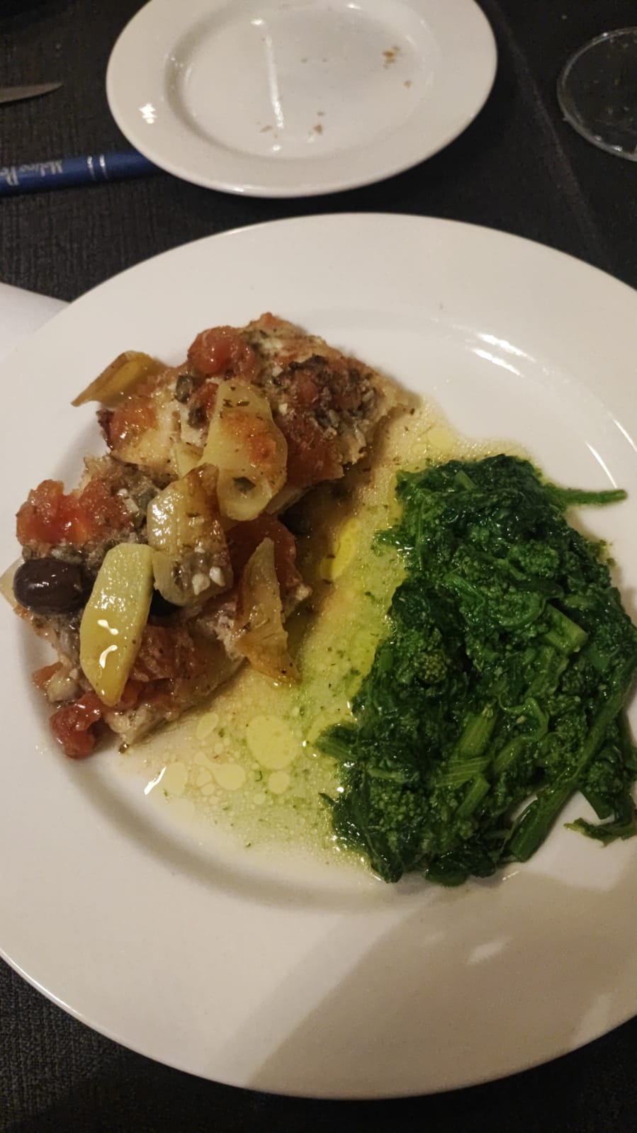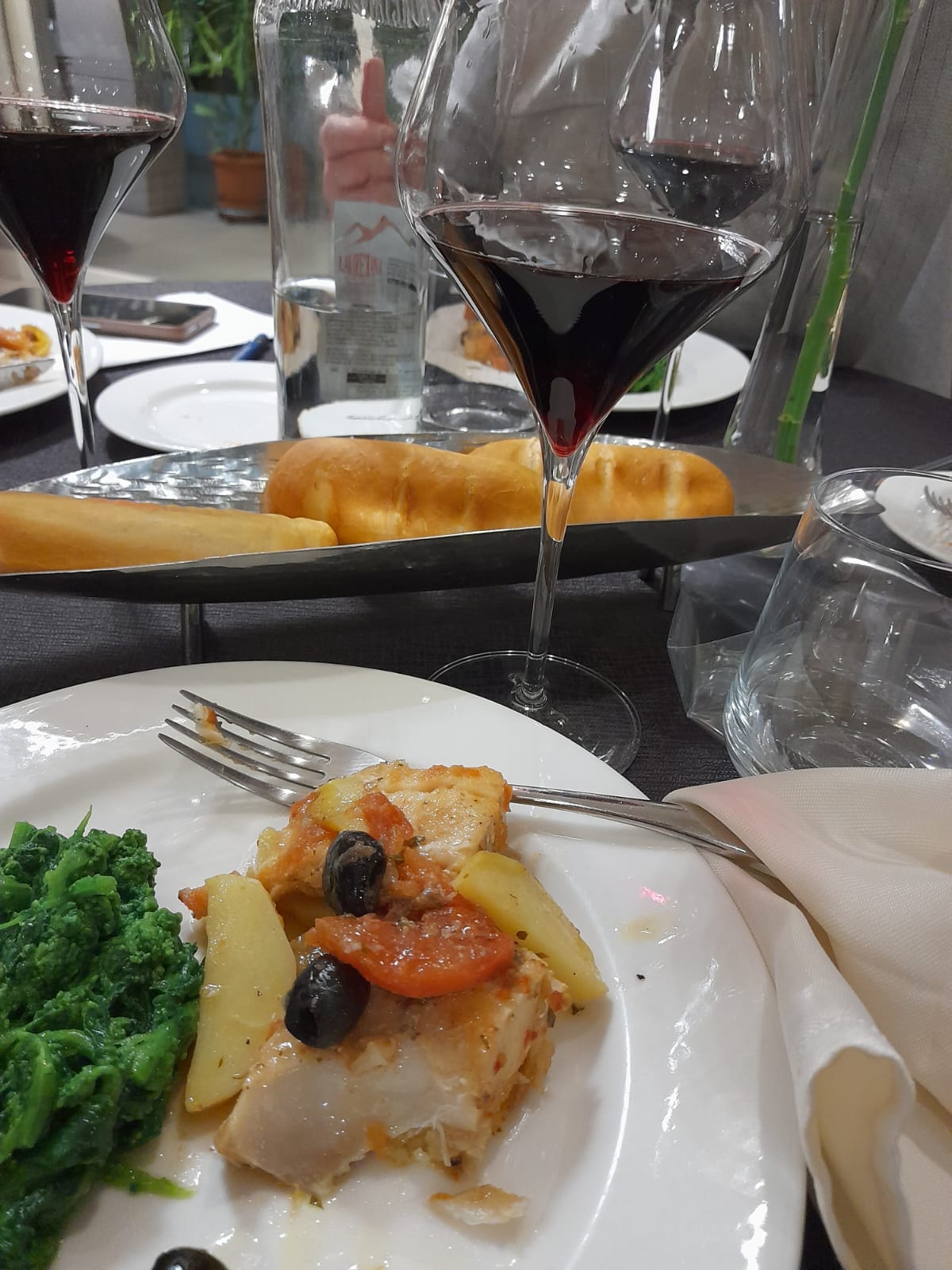 Arriva lo stoccafisso all’anconetana con cime di rapa ed i calici si tingono di rosso ma un rosso atipico, quasi old style. Come avviciniamo il naso al bordo del calice, emerge nettamente un sentore di pepe nero ed un accenno di verde e poi in bocca, un moderato grado alcolico(13) ci presenta tutto il “sapore” della vernaccia nera di Serrapetrona “ferma” (l’originaria è in forma spumantizzata), un vitigno che da 800 anni trova libera espressione nell’omonima zona dove il clima rigido opera una rigida selezione tra uve “abilii” e non!