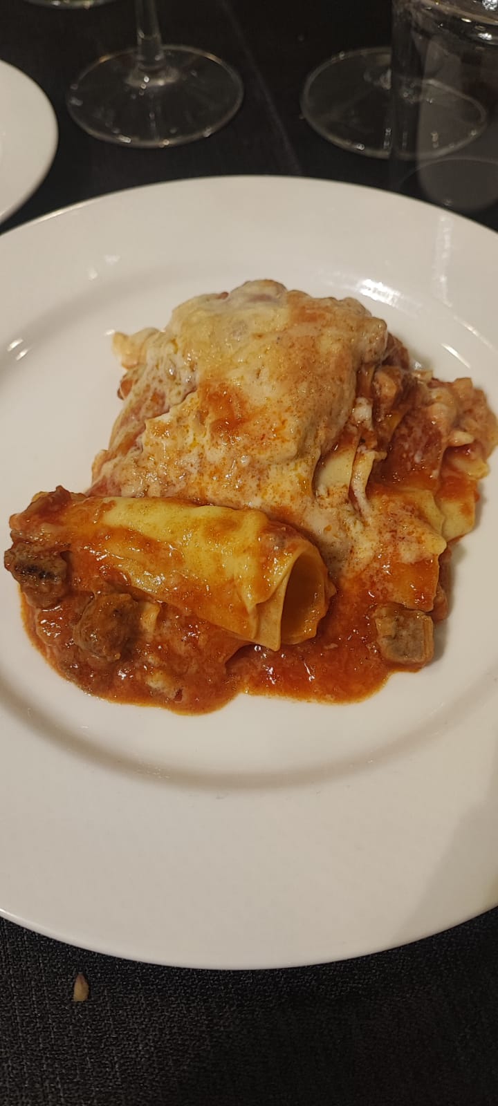 Arriva l’antipasto di ciauscolo (eccellente), formaggio con noci e miele e le immancabili olive fritte all’ascolana a cui abbiniamo uno spumante metodo classico di verdicchio biologico dosaggio zero della zona docg di Jesi dell’azienda Pievalta che rivela tutta la potenza del verdicchio lavorato da mani sapienti (la proprietà è di Barone Pizzini cantina della Franciacorta fresca di proclamazione di miglior cantina dell’anno); nel 2002 questi bresciani intraprendenti decisero d’investire nello jesino in 43 ettari che vanno da Maiolati Spontini fino al monte Follonica località S. Paolo da cui proviene il vino che spumantizzato col metodo classico origina il perlugo dosaggio zero acquistabile in enoteca onesta a 14 euro.