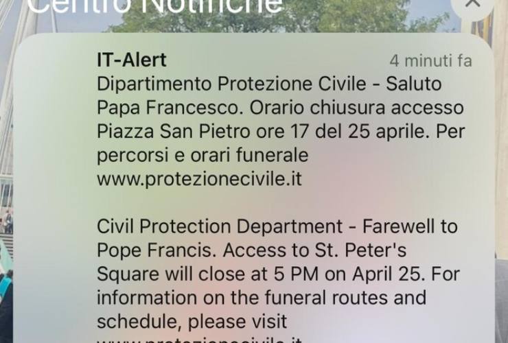 Con un It-Alert inviato ai telefonini di tutta la città di Roma, la Protezione Civile nazionale ha chiarito che per l’ultimo