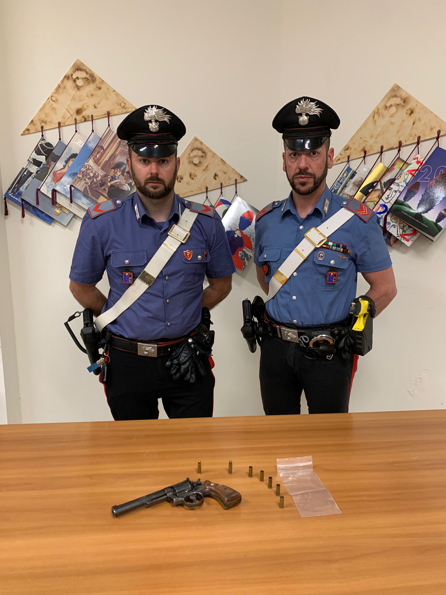 Durante la perquisizione i carabinieri hanno recuperato 9 bossoli calibro 38, sei dei quali esplosi.