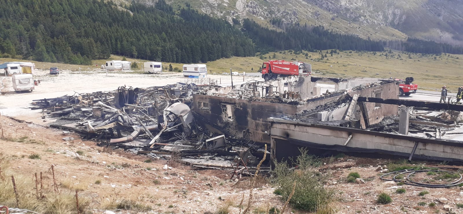 Intervenute da L’Aquila 4 squadre dei vigili del fuoco con una decina di uomini ma al loro arrivo, considerando la distanza tra il capoluogo uno degli angoli più belli della piana di Campo Imperatore, l’imponente struttura ricostruita pochi anni fa, in gran parte in legno, era già andata completamente distrutta.