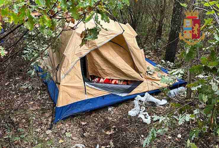 Nel corso della accurata perquisizione della zona del bivacco, è stato trovato tutto il necessario per vivere nel bosco: due batterie da auto, cibo, strumenti da cucina, coperte, oltre al materiale per confezionare la droga e un passamontagna. Un’accurata perquisizione del posto ha permesso di recuperare quasi 70 g di stupefacente (tra cocaina, eroina e hashish), e poco meno di un migliaio di euro in contanti, provento dell’attività delittuosa.