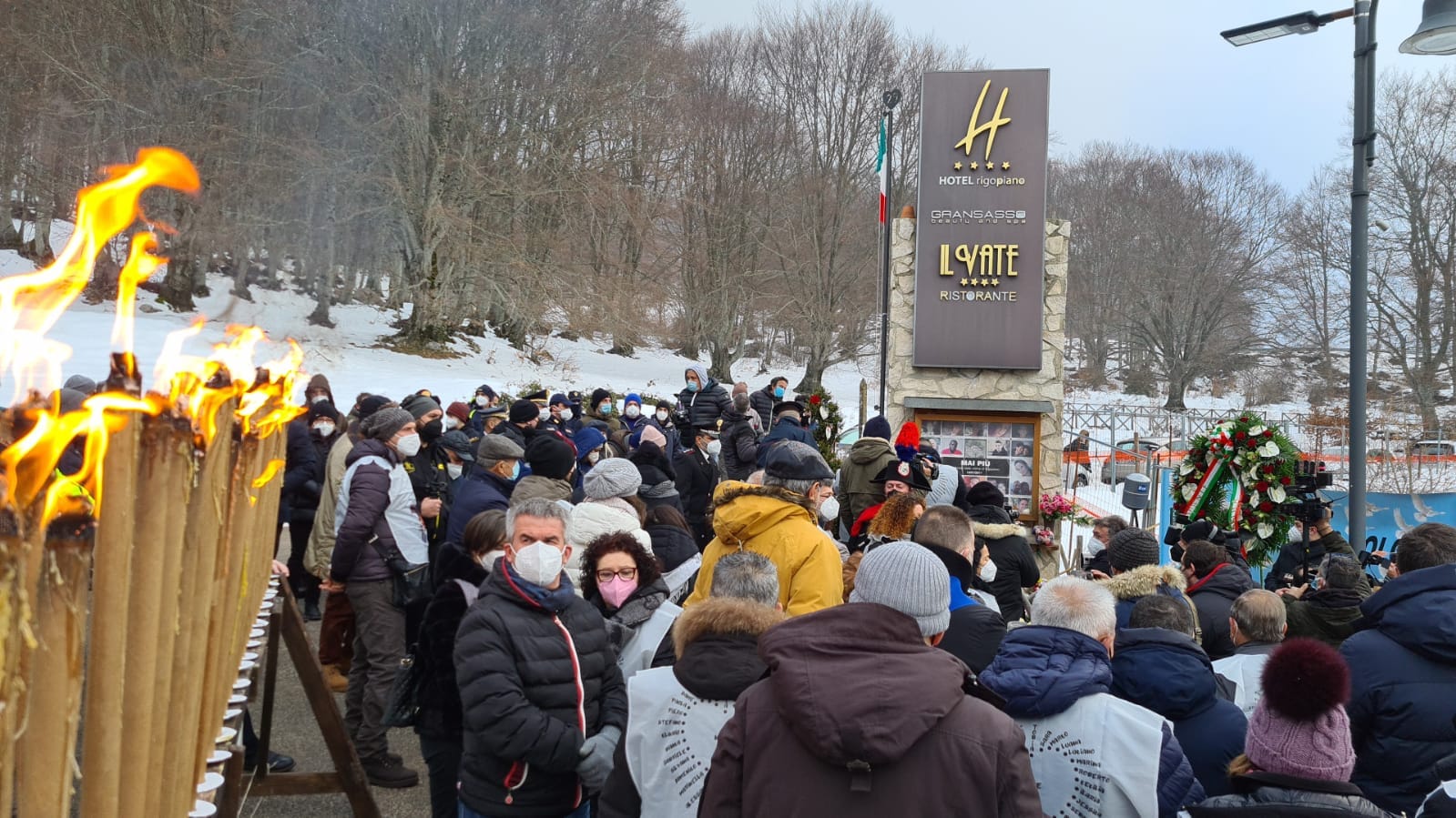 Una cerimonia iniziata con un fiaccolata e finita all’imbrunire. A portare la vicinanza delle istituzioni ai parenti delle vittime e ai sopravvissuti sono stati il presidente della Regione Abruzzo Marco Marsilio, il presidente del Consiglio regionale Lorenzo Sospiri, il prefetto di Pescara Giancarlo Di Vincenzo e il questore di Pescara Luigi Liguori.