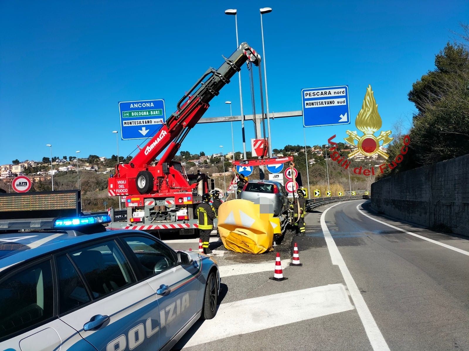 L’impatto è stato attutito dalla protezione in plastica posta all’estremità del guard-rail, ma l’auto è stata seriamente danneggiata e il ragazzo è stato estratto dai vigili del fuoco di Pescara, poi affidato al 118 e condotto in ospedale con lievi ferite.