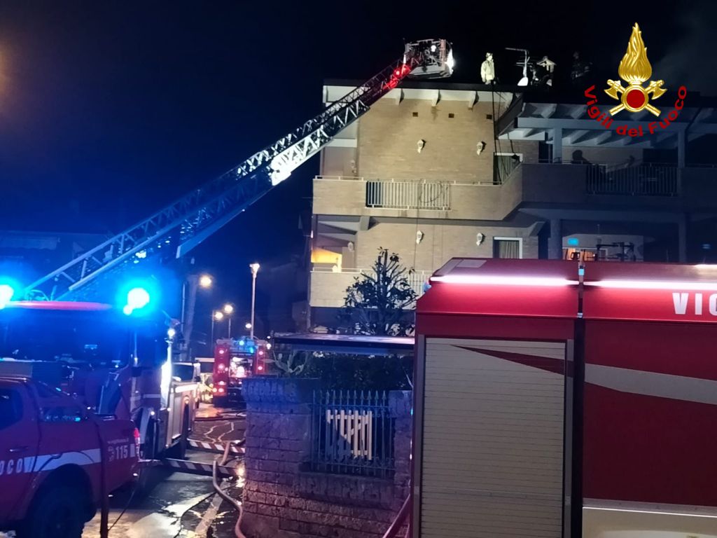 Alle ore 4,15 circa due squadre dei Vigili del Fuoco di Pescara con il supporto dell’autobotte e autoscala sono intervenute in via Giulianova a Spoltore per incendio che ha coinvolto il tetto in legno di un’abitazione.