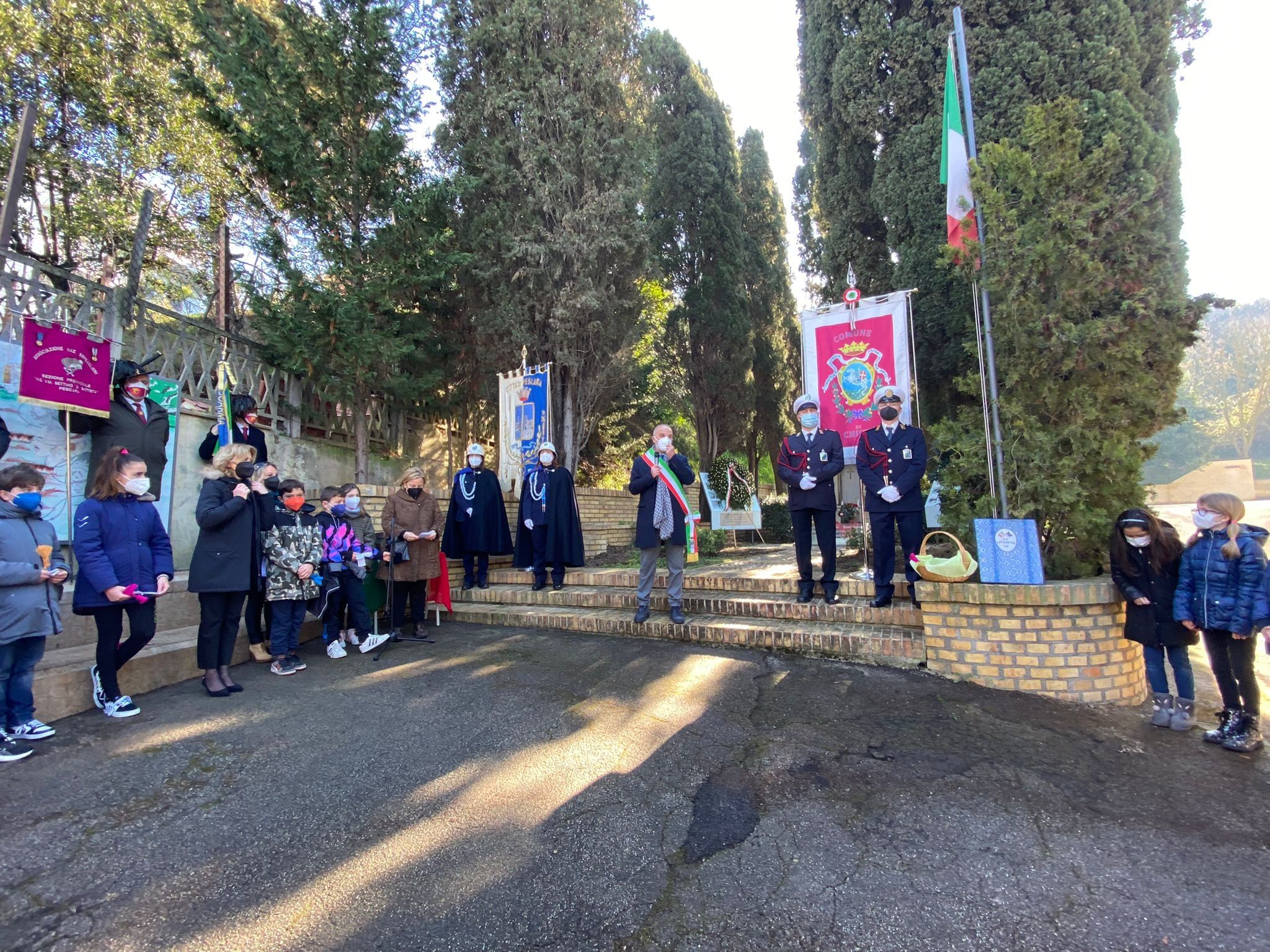 Una solenne cerimonia ha visto la presenza del prefetto Giancarlo Di Vincenzo, del sindaco Carlo Masci e del sindaco di Chieti Diego Ferrara, oltre ai rappresentanti delle Forze dell’Ordine, delle Forze armate e delle associazioni combattentistiche e d’arma.