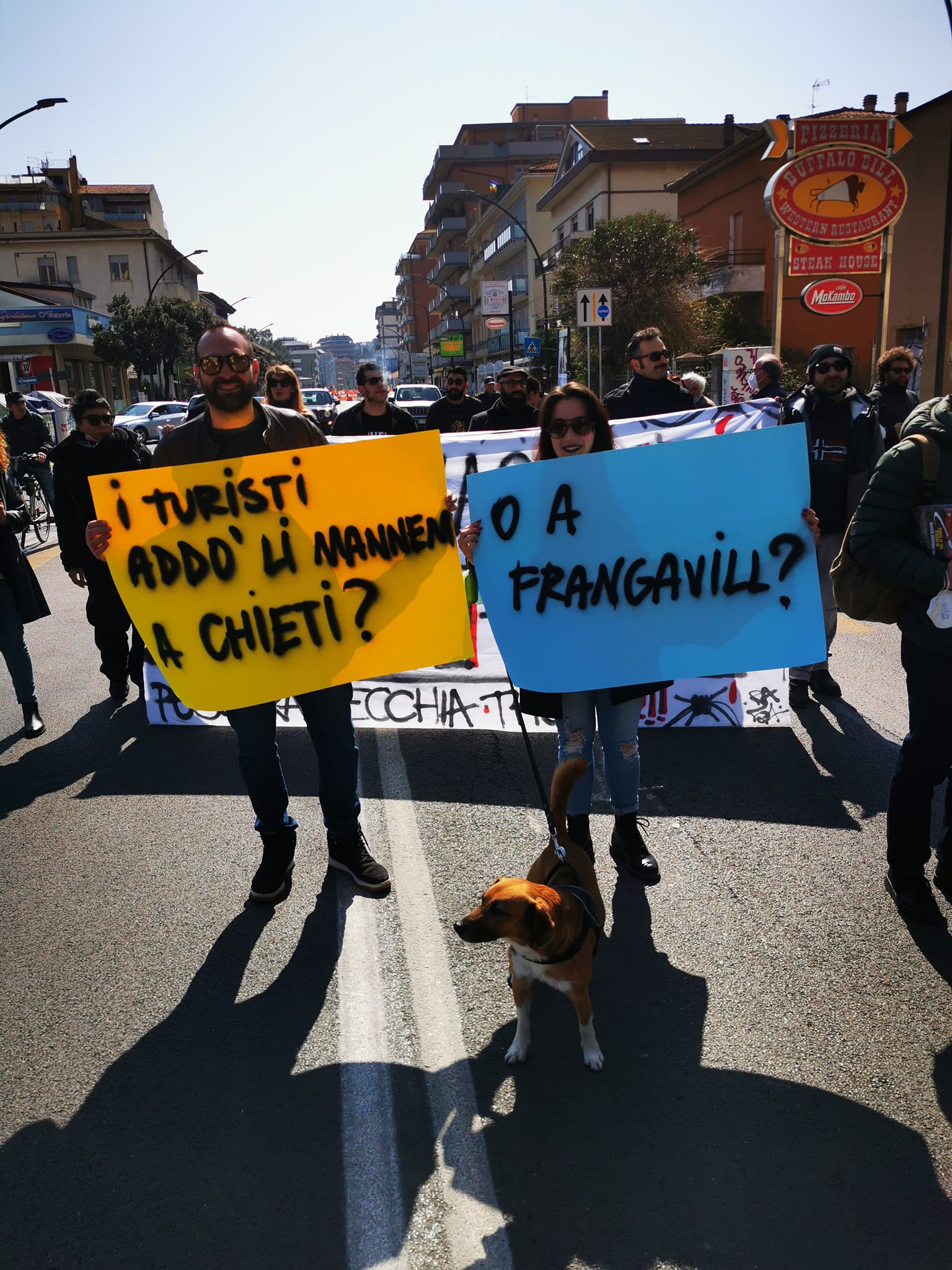 Con i manifestanti, anche tanti esponenti politici opposti alla giunta di centrodestra: dai consiglieri comunali di opposizione, al senatore Pd Luciano D’Alfonso, ai consiglieri regionali regionali dem Blasioli e Paolucci e ai pentatellati Pettinari e Marcozzi.