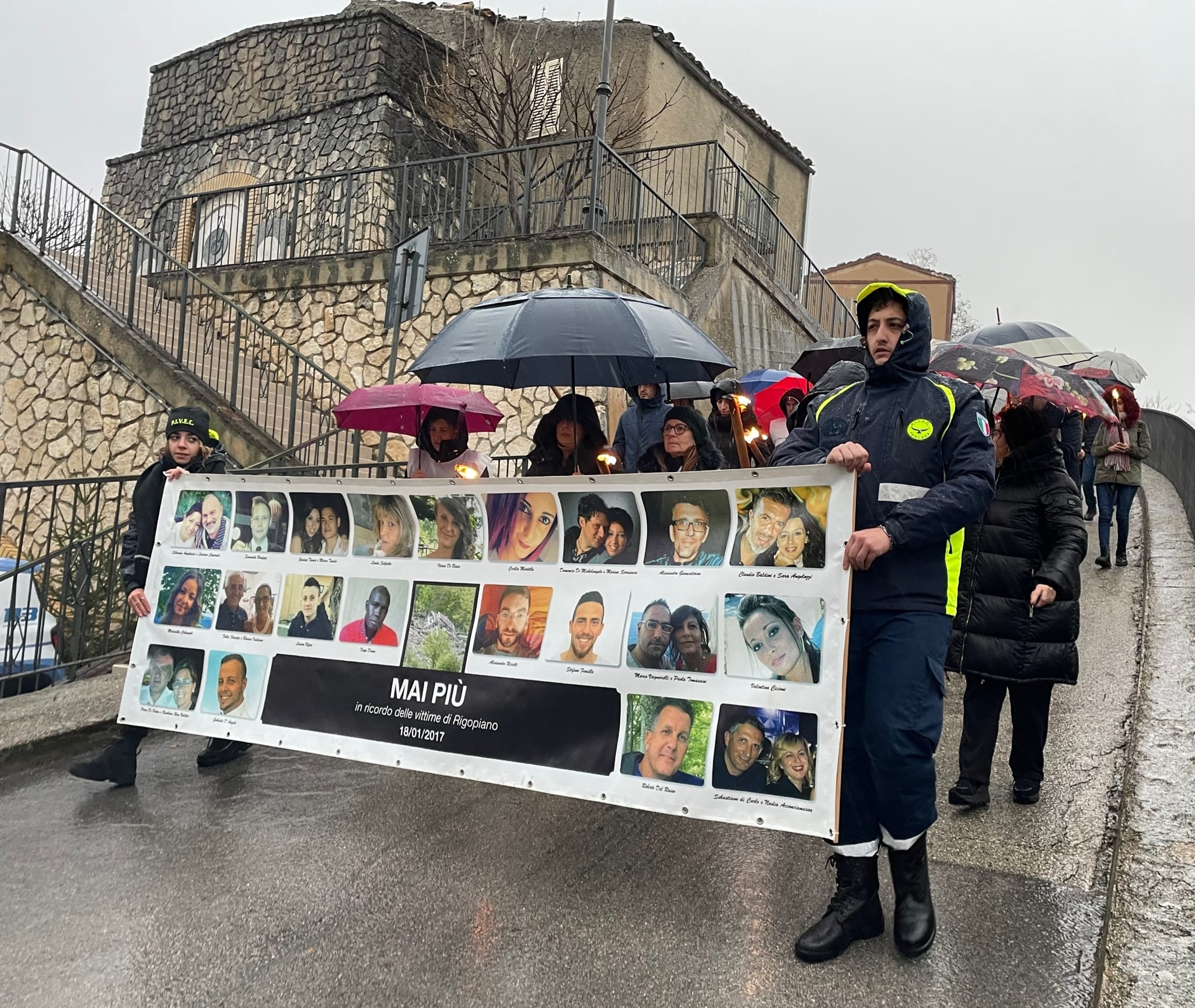 Sul luogo della tragedia alle 16,49, l’ora della valanga che travolse il resort, dovevano tenersi una serie di iniziative, con una fiaccolata davanti all’obelisco dell’hotel distrutto dalla valanga, una messa all’interno del sito e successivamente dei rintocchi di campana a scandire i nomi dei “29 Angeli”, e la deposizione all’interno del sito dell’hotel di 29 rose bianche.