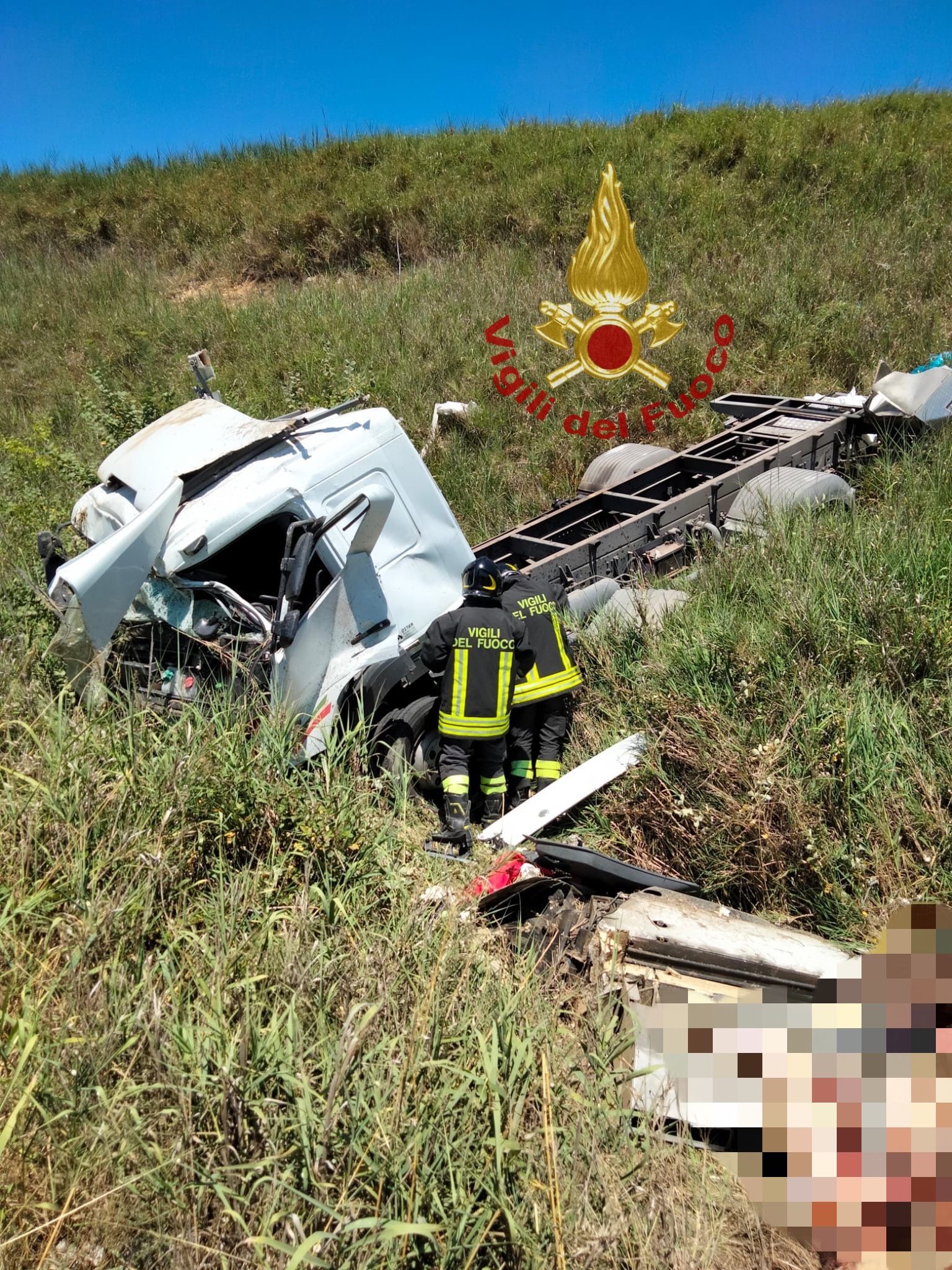 Una squadra del Vigili del Fuoco di Pescara è intervenuta sulla strada provinciale 2 per soccorrere il conducente di un autocarro frigorifero uscito di strada finendo in una scarpata,.