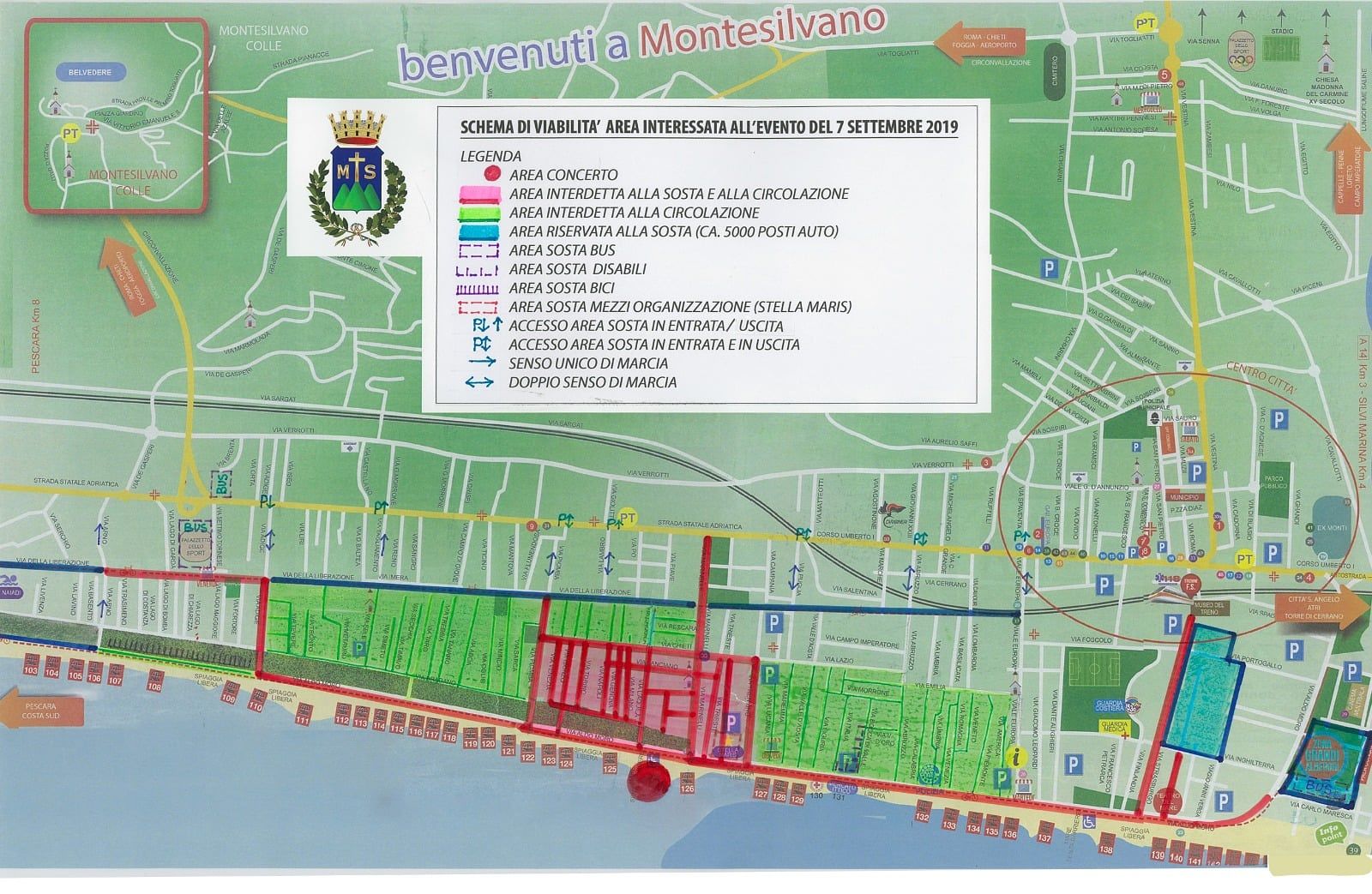 Per agevolare chi abita in zona, ma soprattutto coloro che si recheranno al concerto, il Comune ha realizzato una mappa che le specifiche delle aree interdette, dei parcheggi e dei sensi di marcia.