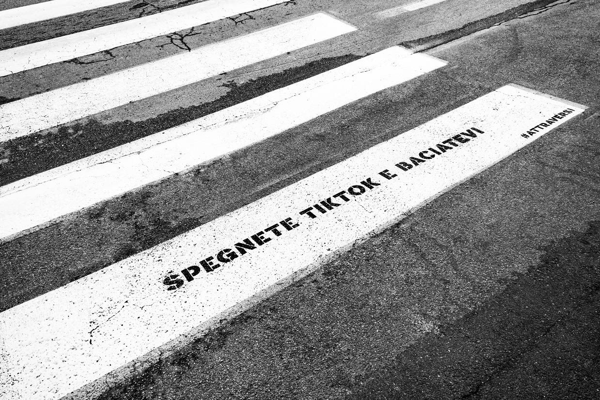 La campagna Attra-Versi prevede la realizzazione di un circuito di frasi impresse con vernici antiscivolo sulla prima striscia pedonale degli attraversamenti chiave della città: piccoli slogan, strofe di canzoni, parole motivanti per grandi e piccoli. Sulle opere non sono presenti loghi o marchi, ma solo l’hashtag #attraVersi per consentire la condivisione sui social, anche in una logica di promozione turistica e marketing territoriale.