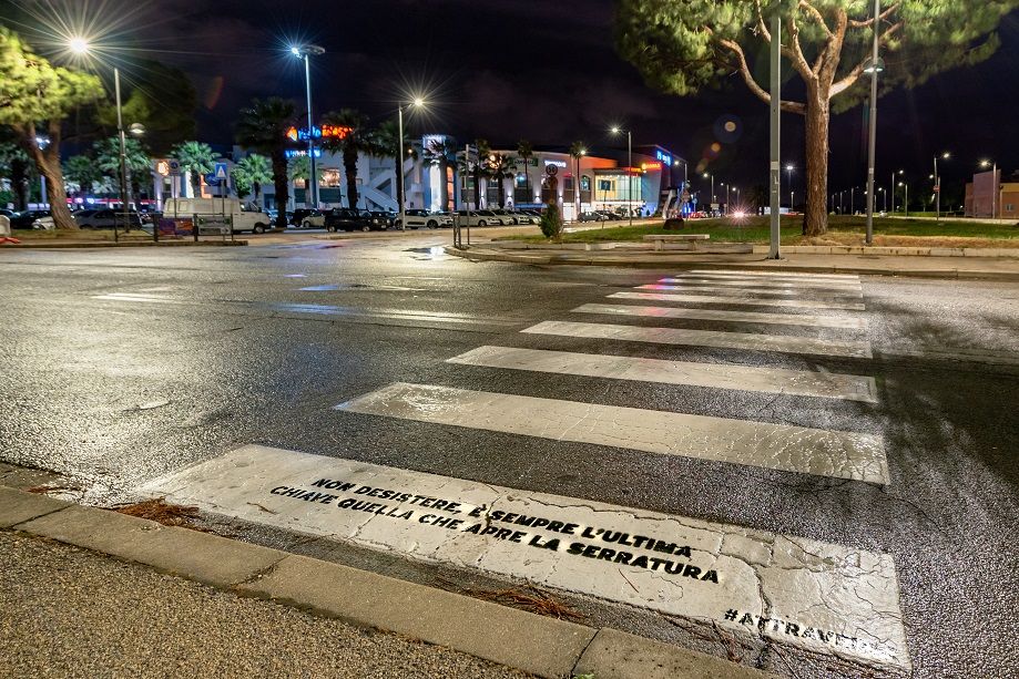 E ancora, “L’impresa eccezionale è essere normale” o “Sorridi, fai respirare l’anima”, lungo le strade principali della città. Sono alcune delle frasi apparse sulle strisce pedonali di Montesilvano, nell’ambito della campagna “Attra-Versi”, il cui obiettivo è quello di infondere giornaliera positività con l’ausilio di versi, di parole di amore e ottimismo, durante una prassi giornaliera, quale è attraversare la strada. Il progetto, subito sposato dal Comune di Montesilvano, è stato ideato dall’imprenditore Alessio Sarra.