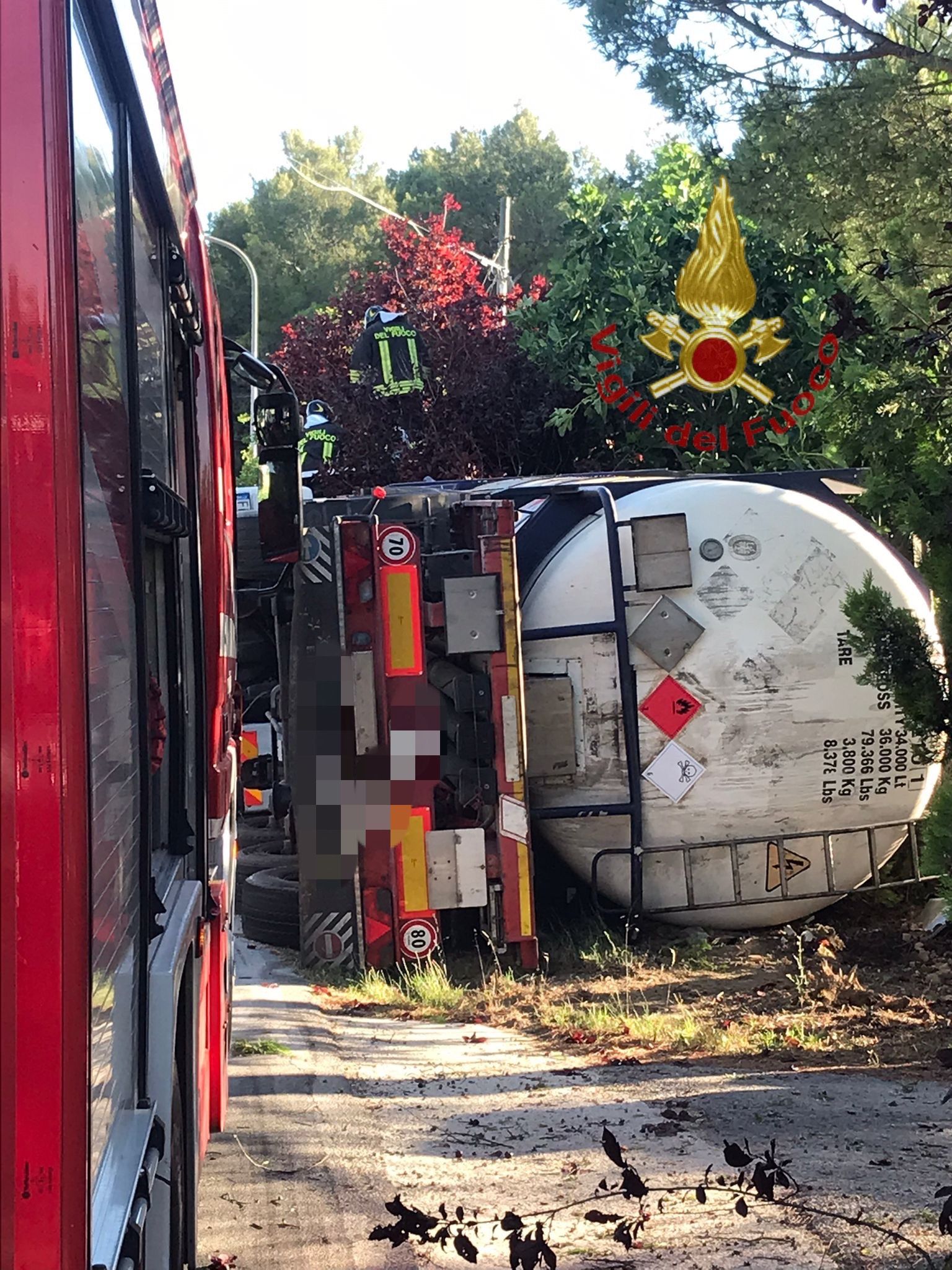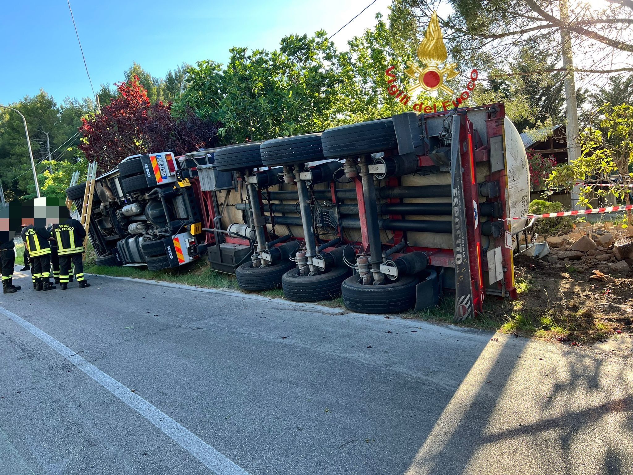 La strada è stata chiusa per consentire il travaso del liquido infiammabile su altra cisterna, mentre una famiglia residente è stata evacuata. Sul posto è intervenuta anche una pattuglia dei Carabinieri per i rilievi del sinistro.