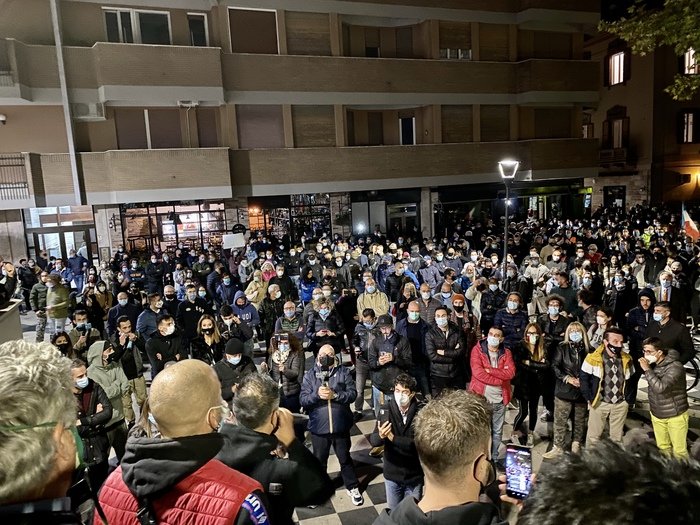 Pescara. Centinaia di persona in piazza a Pescara per protestare contro le chiusure imposte dal Dpcm Conte: c’erano baristi, ristoratori, titolari di palestre, operatori di centri scommesse e sale bingo e rappresentanti di tutti i settori colpiti dal decreto.