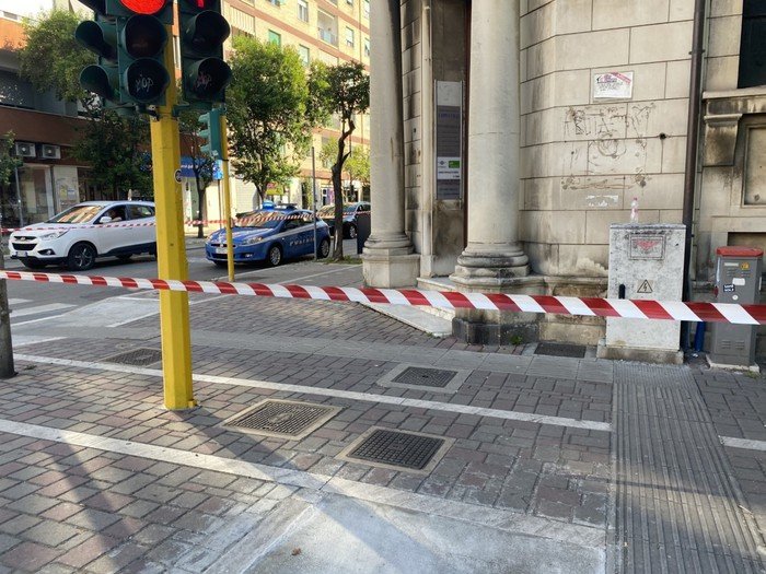 Evacuato per precauzione il distretto Asl. Agitazione massima anche in tribunale, dove decine di persone sono accalcate all’esterno, mentre vengono predisposte le operazione per far brillare i pacco.