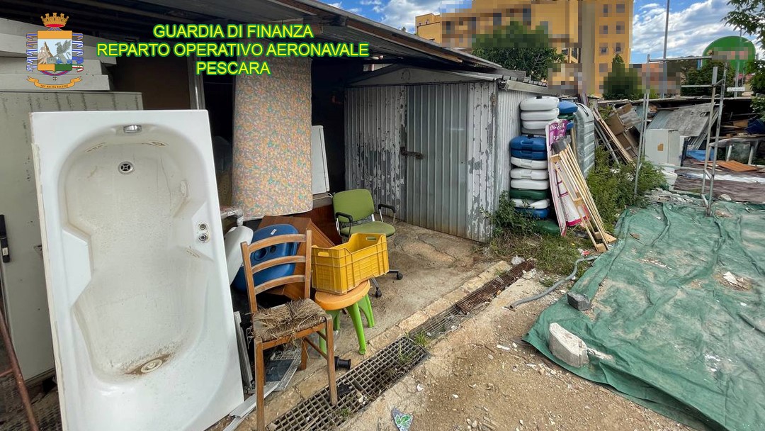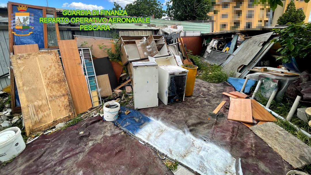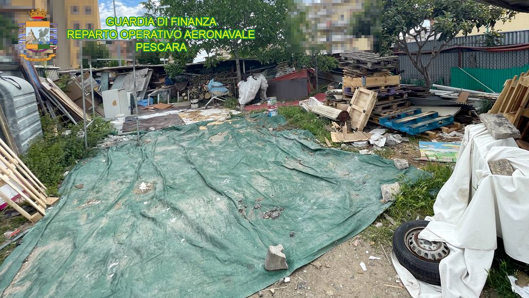 In collaborazione con il supporto dei militari del Gruppo Pescara e di personale del locale Comando dei Vigili del Fuoco e dell’Ufficio Tecnico, le squadre aree delle Fiamme Gialle hanno individuato, nel comune di Pescara, un sito interamente recintato e ben protetto dalla normale visuale, costituito da un agglomerato di strutture abusive utilizzate per lo svolgimento di attività economiche e per lo smaltimento di rifiuti speciali pericolosi.