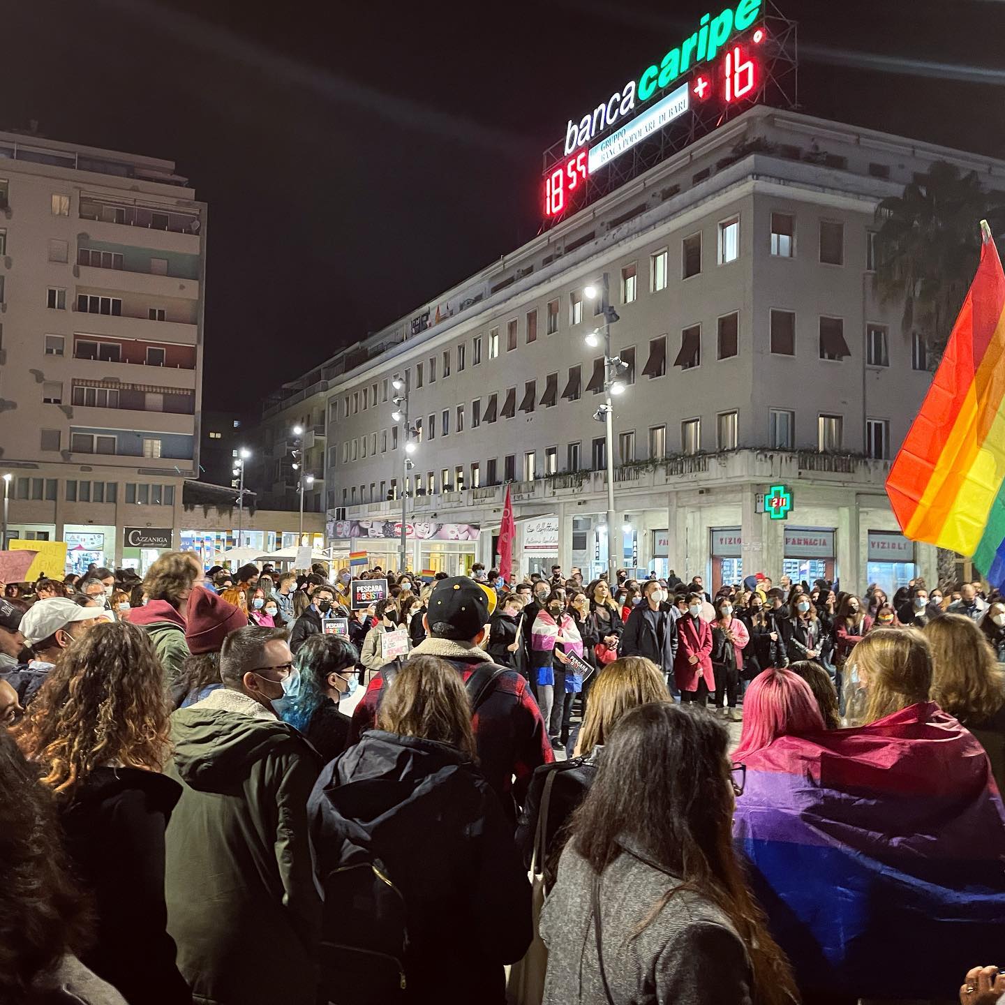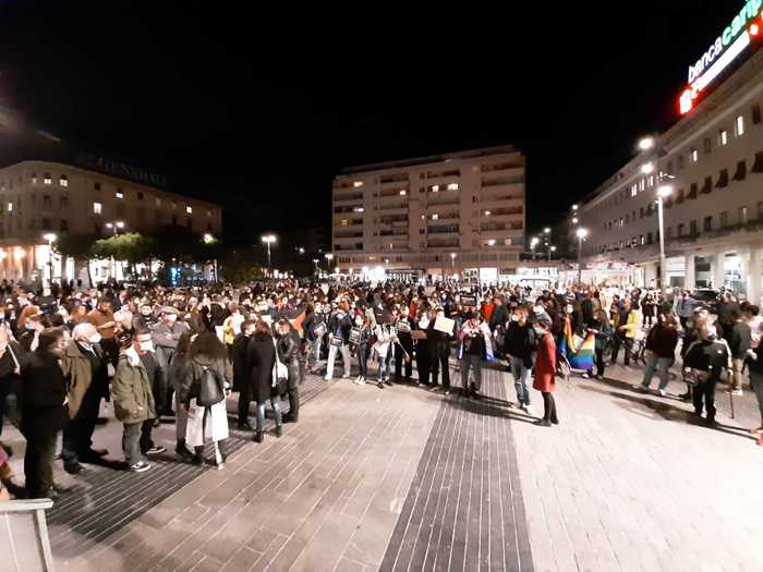 Pescara. Alcune centinaia di persone hanno manifestato ieri pomeriggio in piazza Salott, a Pescara, contro la bocciatura in Senato del Ddl Zan.