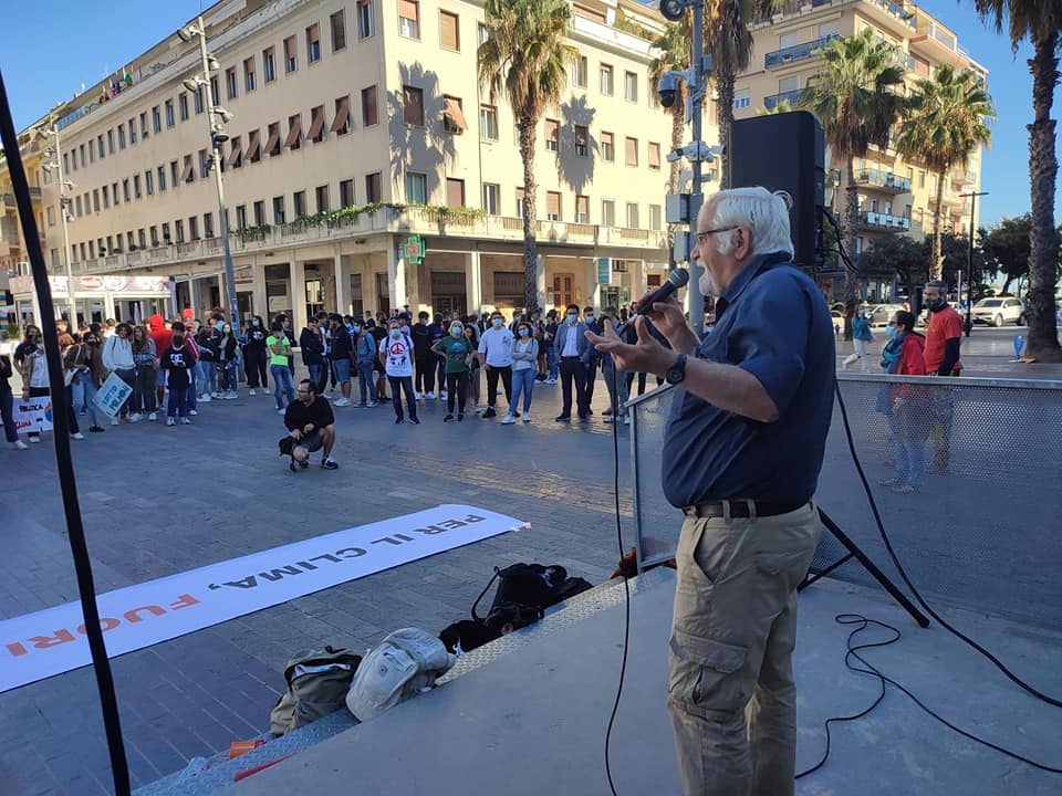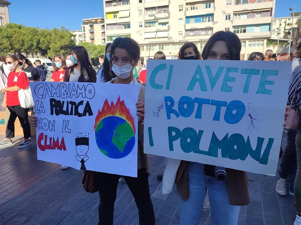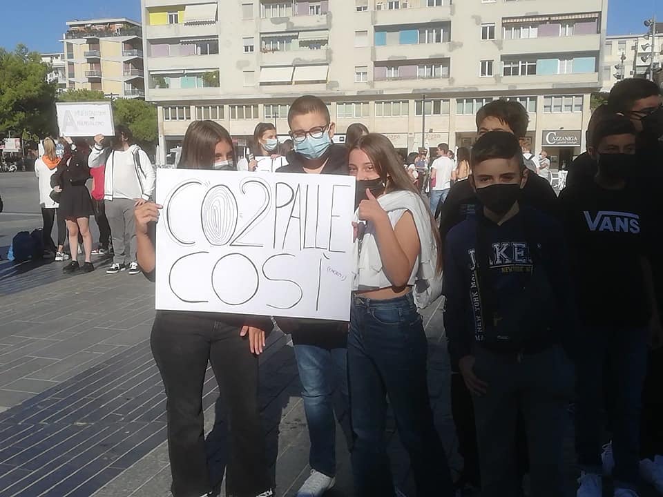 Nel capoluogo adriatico, studenti e giovani si sono ritrovati, con striscioni e cartelloni inneggianti alla transizione ecologica e alle politiche della sostenibilità ambientale e contro il cambiamento climatico, si sono ritrovati in piazza Salotto.