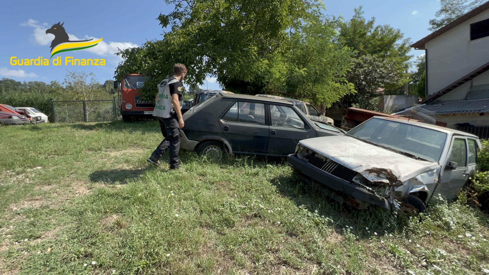 L’attenzione dei finanzieri è stata attratta dalle numerose autovetture in pessime condizioni, molte delle quali parzialmente smontate, localizzate all’interno di una struttura organizzata e ben delineata da un’apposita recinzione. Un più approfondito controllo ha permesso di appurare che non sussisteva alcuna autorizzazione per l’esercizio di un’attività commerciale nell’area e che la stessa non era nemmeno classificata come centro di stoccaggio o discarica.