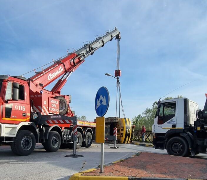 Sul posto sono intervenute due squadre dei vigili del fuoco che, con l’ausilio di una gru, stanno tentando di rimettere in piedi il grosso mezzo da lavoro. Nel frattempo, però, il traffico dell’ora di punta è rimasto congestionato e lunghe code si sono formate sia in direzione LungoFino che va verso l’ingresso dell’autostrada.