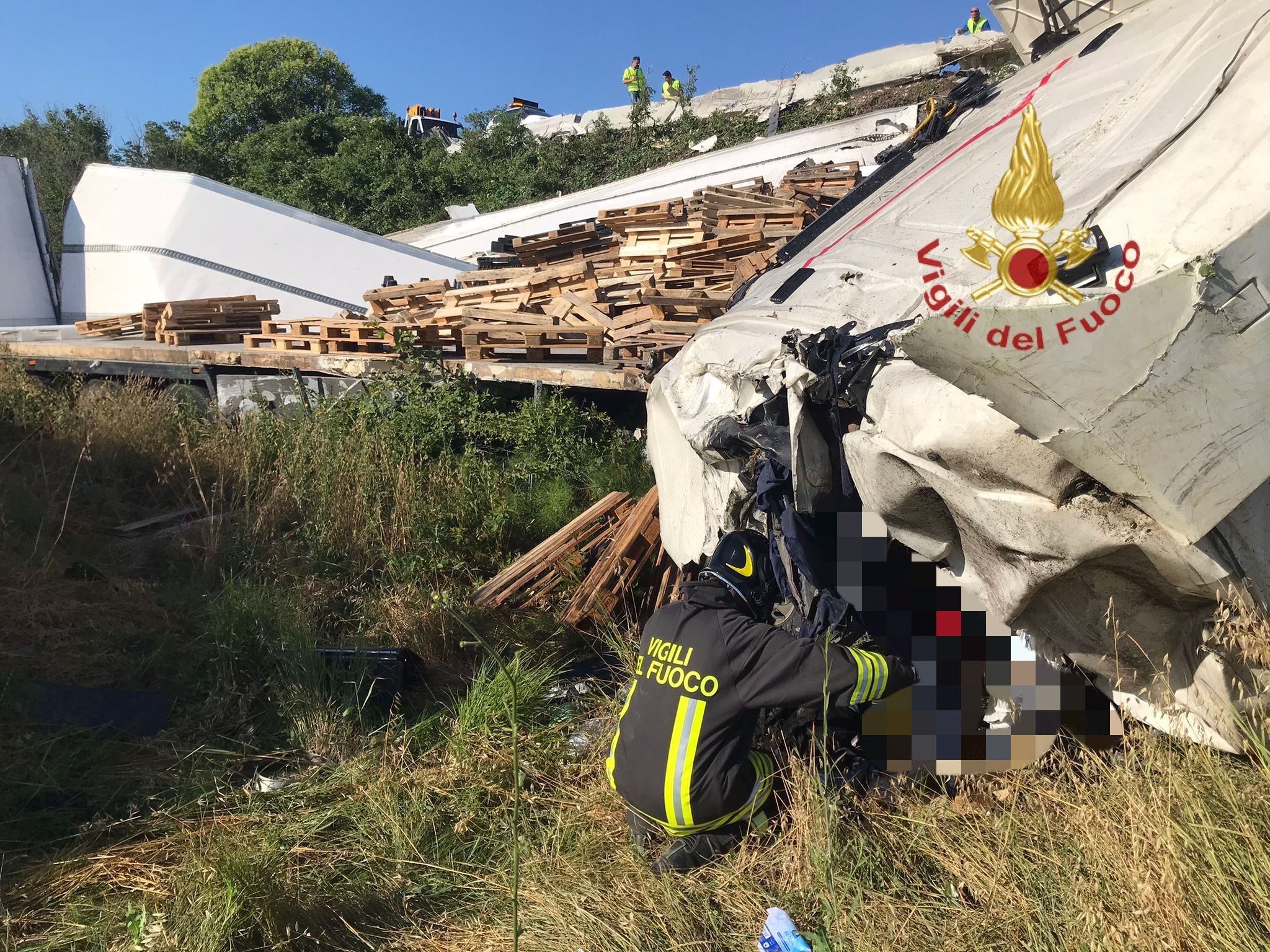 Due squadre dei Vigili del Fuoco di Pescara sono intervenute sul posto, provvedendo a mettere in sicurezza l’area ed estrarre il conducente dalla cabina, cosciente ma gravemente ferito, per consegnarlo al personale del 118 intervenuto con l’elicottero.