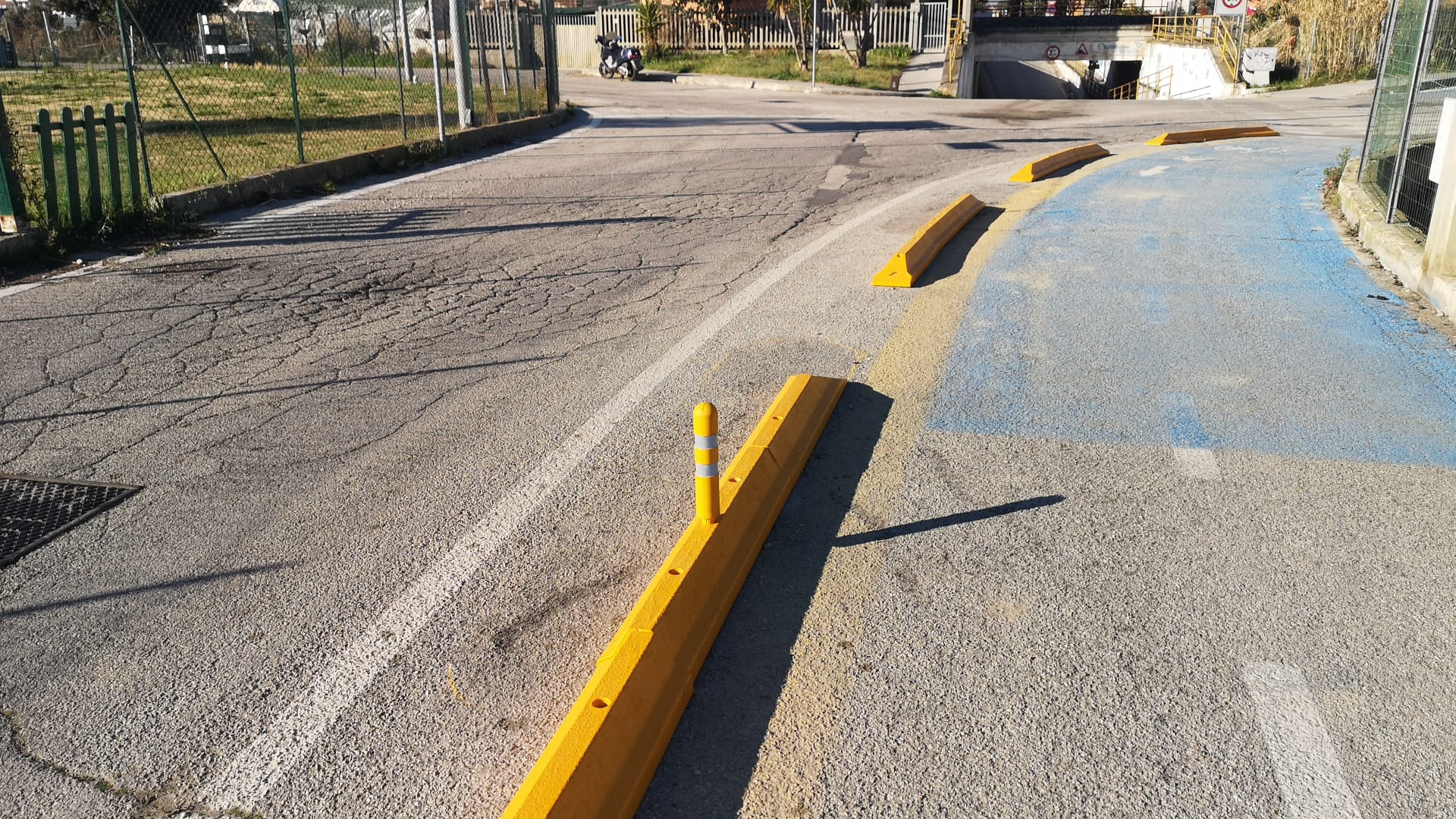 Tra le altre cose, sono evidenti sui delimitatori le tracce di pneumatici di automobilisti che con una guida imprudente rischiano di invadere il percorso riservato alle bici e ai pedoni.