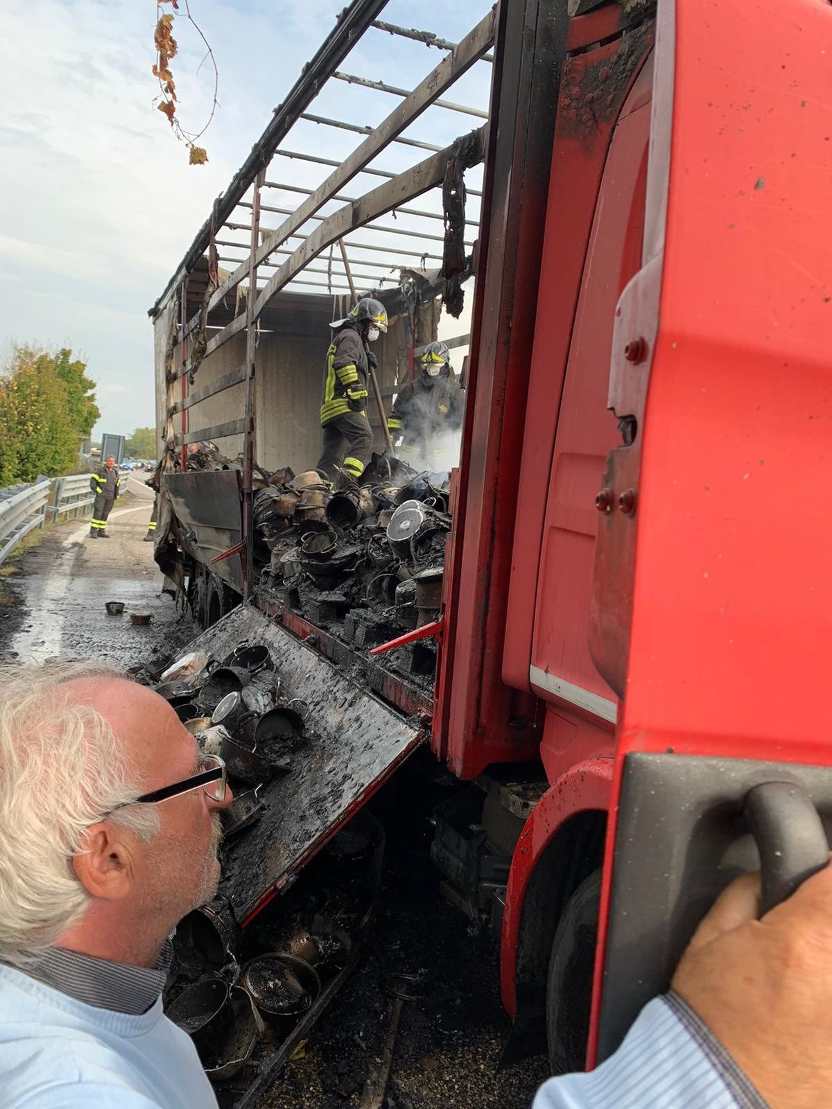 Il mezzo pesante ha preso fuoco sull’Ascoli mare nei pressi di Spinetoli, causando forti rallentamenti al traffico.