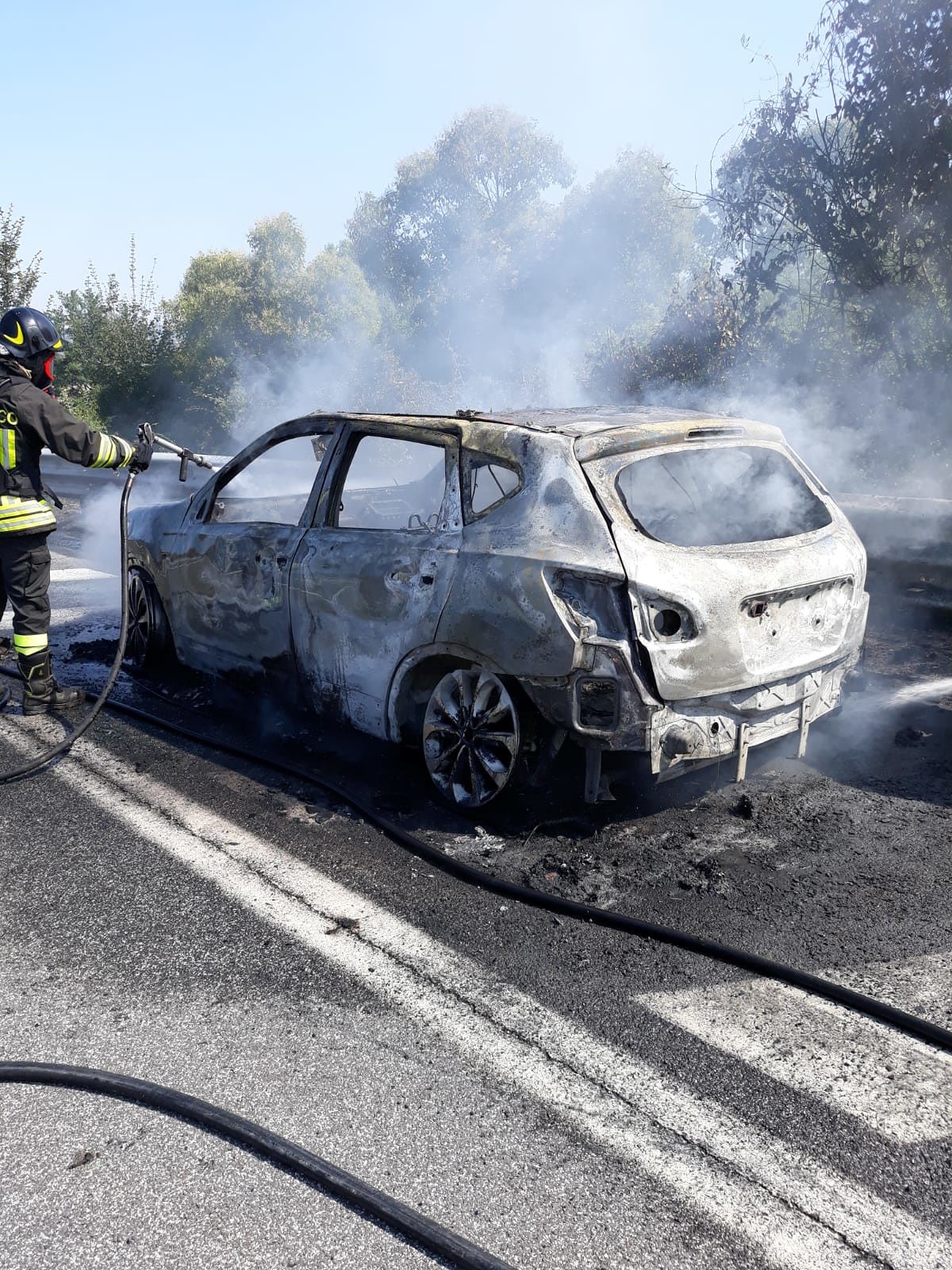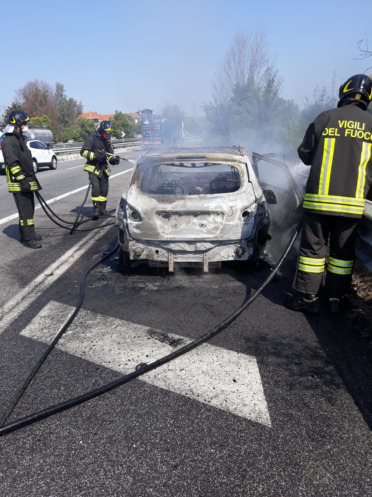 Per quanto riguarda l’auto, le fiamme si sono sviluppate in una Nissan Qashqai con una famiglia a bordo. Il conducente, accortosi del fumo che fuoriuscita dal vano motore, ha percorso un tratto della corsia di emergenza, per poi fermare il mezzo in una piazzola di sosta, evitando di bloccare il traffico sull’autostrada, che ha subito comunque dei rallentamenti. I vigili del fuoco hanno provveduto a spegnere il mezzo, che è andato completamente bruciato.