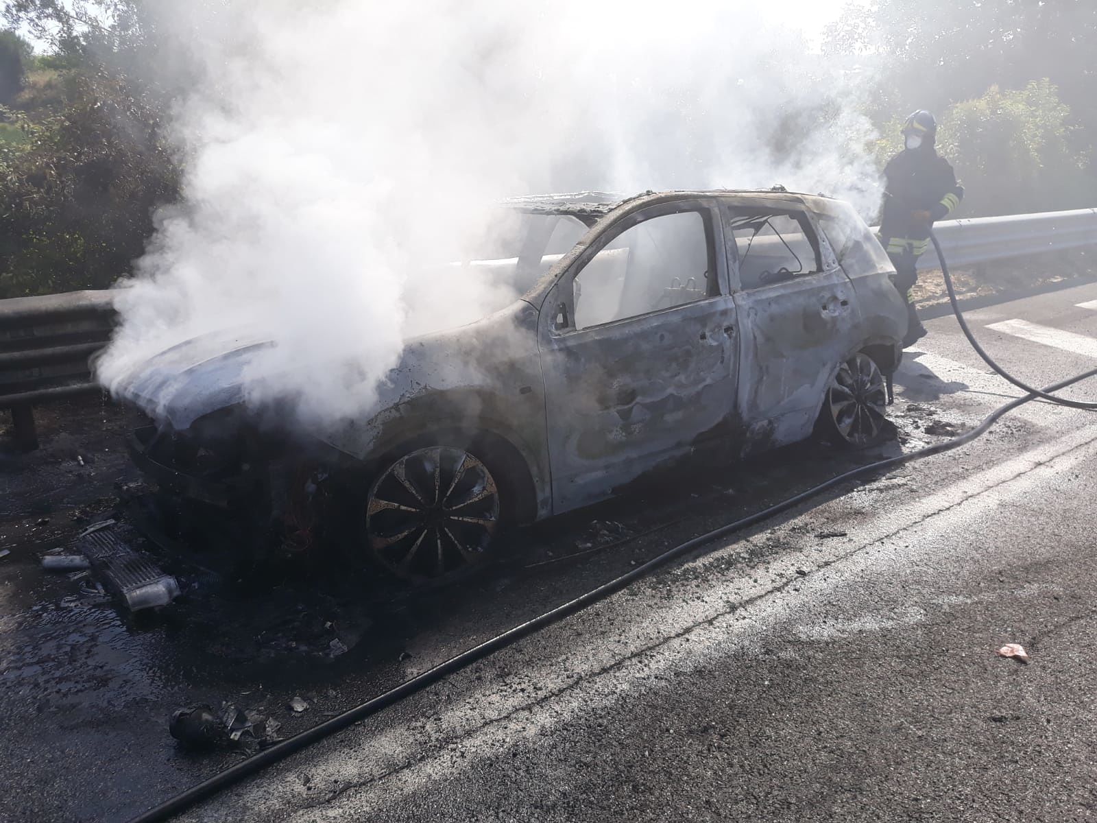 Sul luogo dell’incendio sono intervenute anche una pattuglia della Polizia Autostradale del VII tronco, per regolare il traffico e un carro attrezzi per la rimozione del veicolo incendiato.