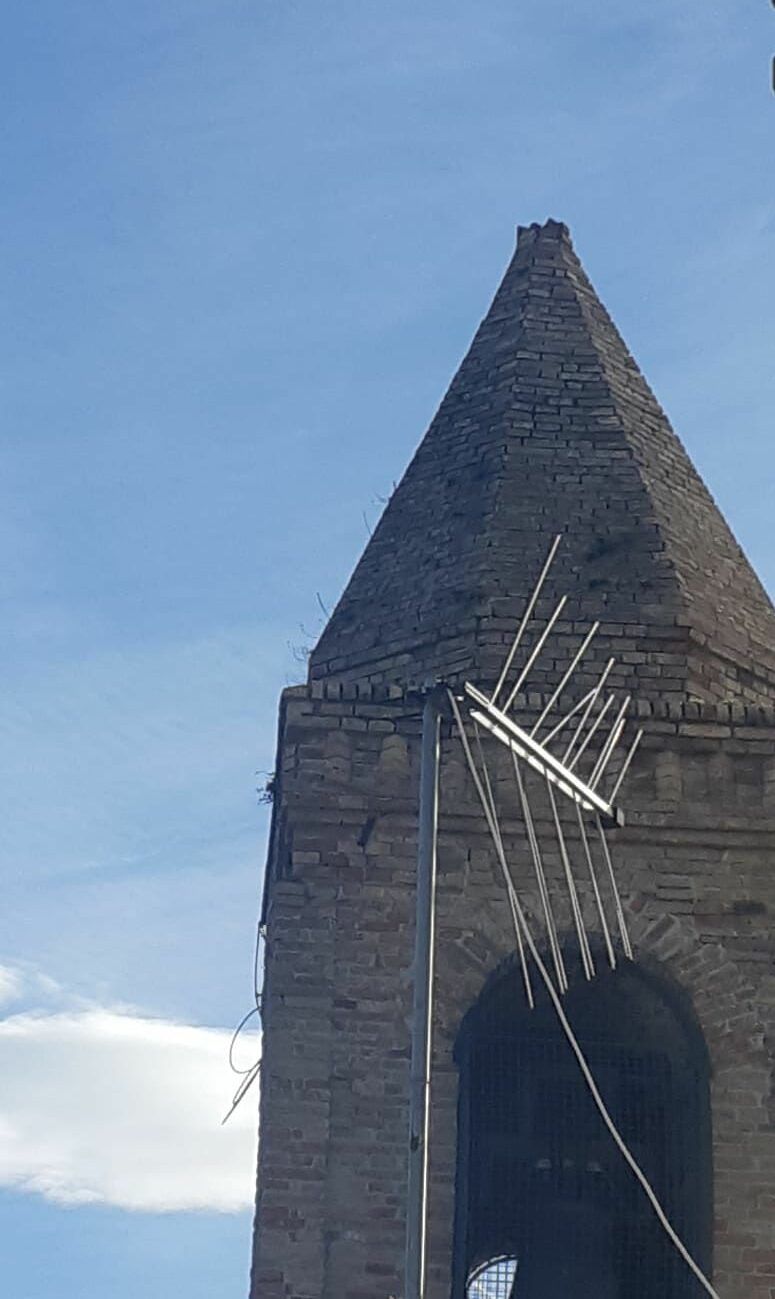 Silvi. A causa del forte vento che sta interessando in queste ore tutto il territorio, è crollata la croce della campana nella torretta della Chiesa del Santissimo Salvatore a Silvi Paese.