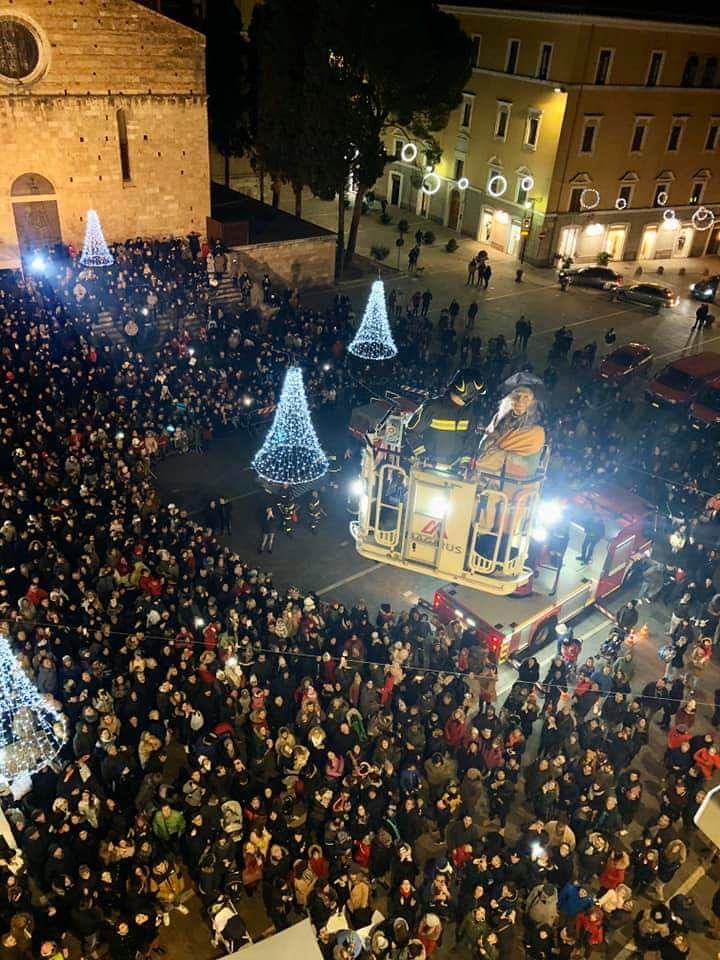 La Befana dell’associazione Grisù – Amici dei Vigili del Fuoco e della Sezione di Teramo dell’associazione Nazionale dei Vigili del Fuoco, che hanno realizzato questo evento in collaborazione con il Comando Provinciale dei Vigili del Fuoco di Teramo e con il patrocinio del Comune di Teramo, è scesa dal palazzo della TeAm per donare ai più piccoli (ma anche ai grandi) dolci e caramelle.