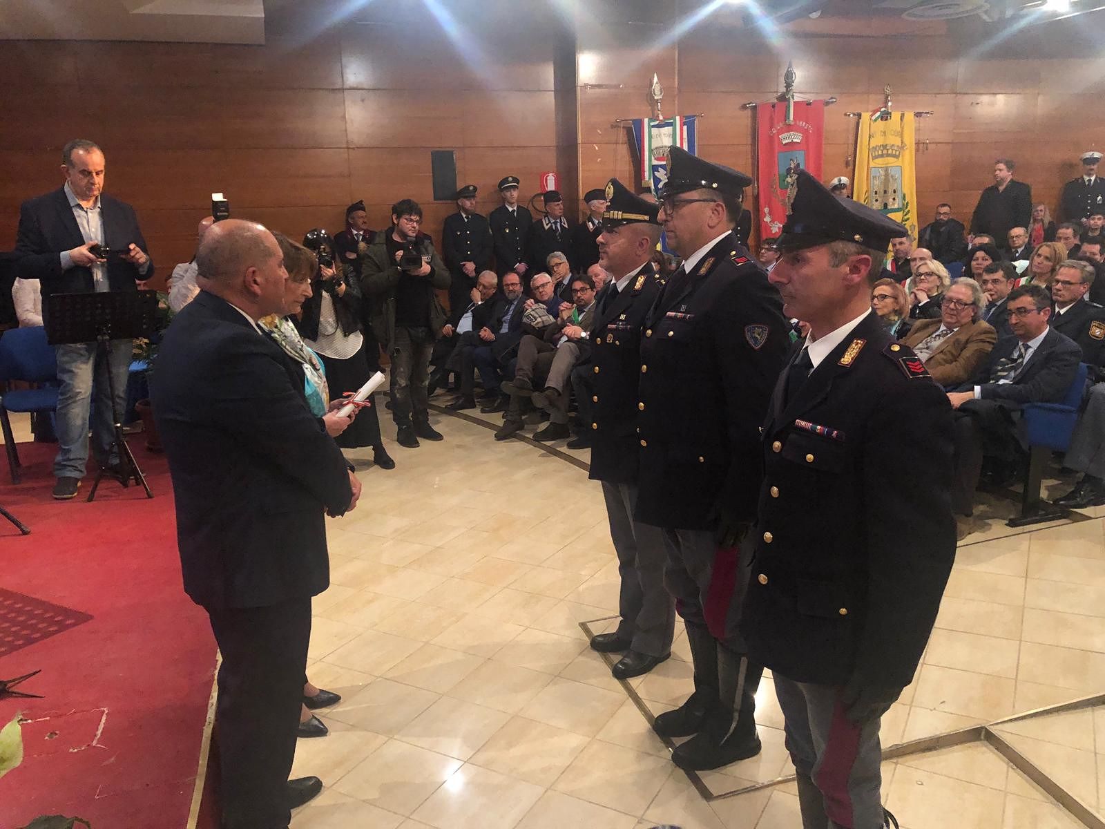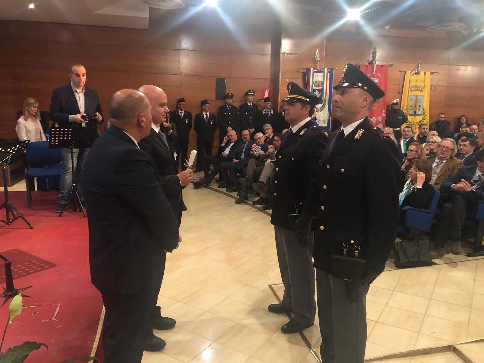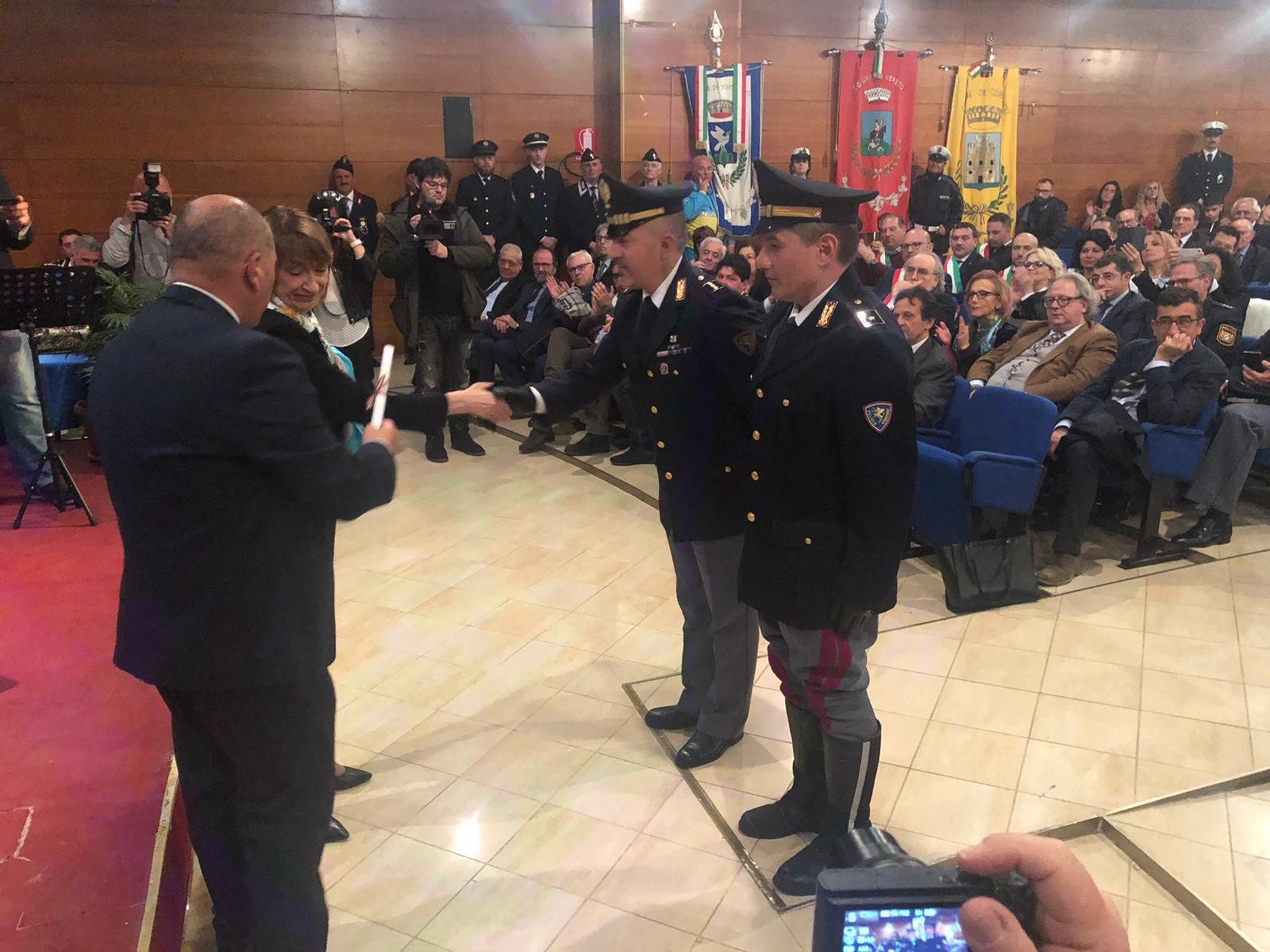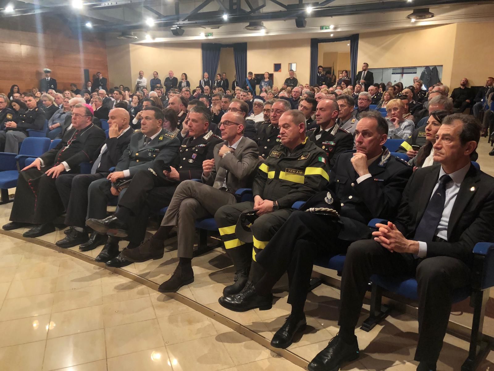 Sindaci del territorio, presidente della Provincia di Teramo, Prefetto Graziella Patrizi, le più alte cariche delle forze dell’ordine provinciali e vigili del fuoco non sono mancati questa mattina alla sala polifunzionale per il discorso del Questore Enrico De Simone e la premiazione di alcuni agenti che si sono distinti per il loro operato. Presente anche il procuratore Antonio Guerriero, i sostituti Stefano Giovagnoni e Silvia Scamurra, ed il giudice Domenico Canosa. Anche il Vescovo, Lorenzo Leuzzi, ha consegnato personalmente un riconoscimento ad alcuni agenti.