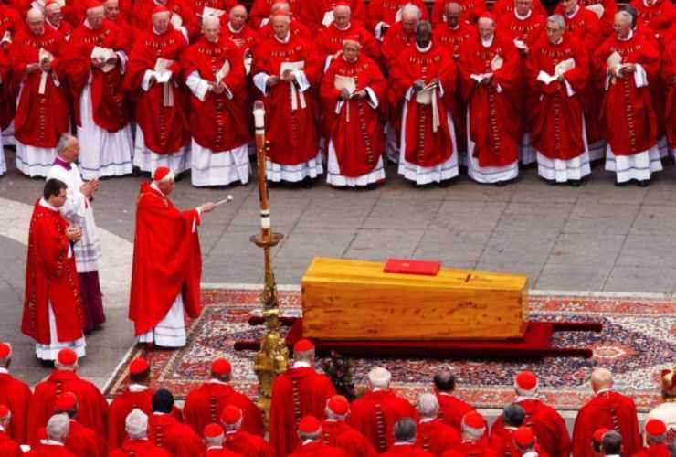 I solenni funerali si svolgono come sempre in Piazza San Pietro, presso l’altare pontificio del Bernini, situato sotto la cupola della basilica. L’elezione del nuovo Papa avviene 15 giorni dopo la morte del precedente, ma può essere prorogato per un massimo di 20 giorni per consentire ad altri cardinali di arrivare nella Città del Vaticano. Il conclave si tiene nella Cappella Sistina secondo rigide regole impossibili da manipolare. I 10 conclavi convocati nel corso del XX e XXI secolo sono durati in media 4 giorni e per diventare Papa il candidato ha bisogno di una maggioranza di due terzi.