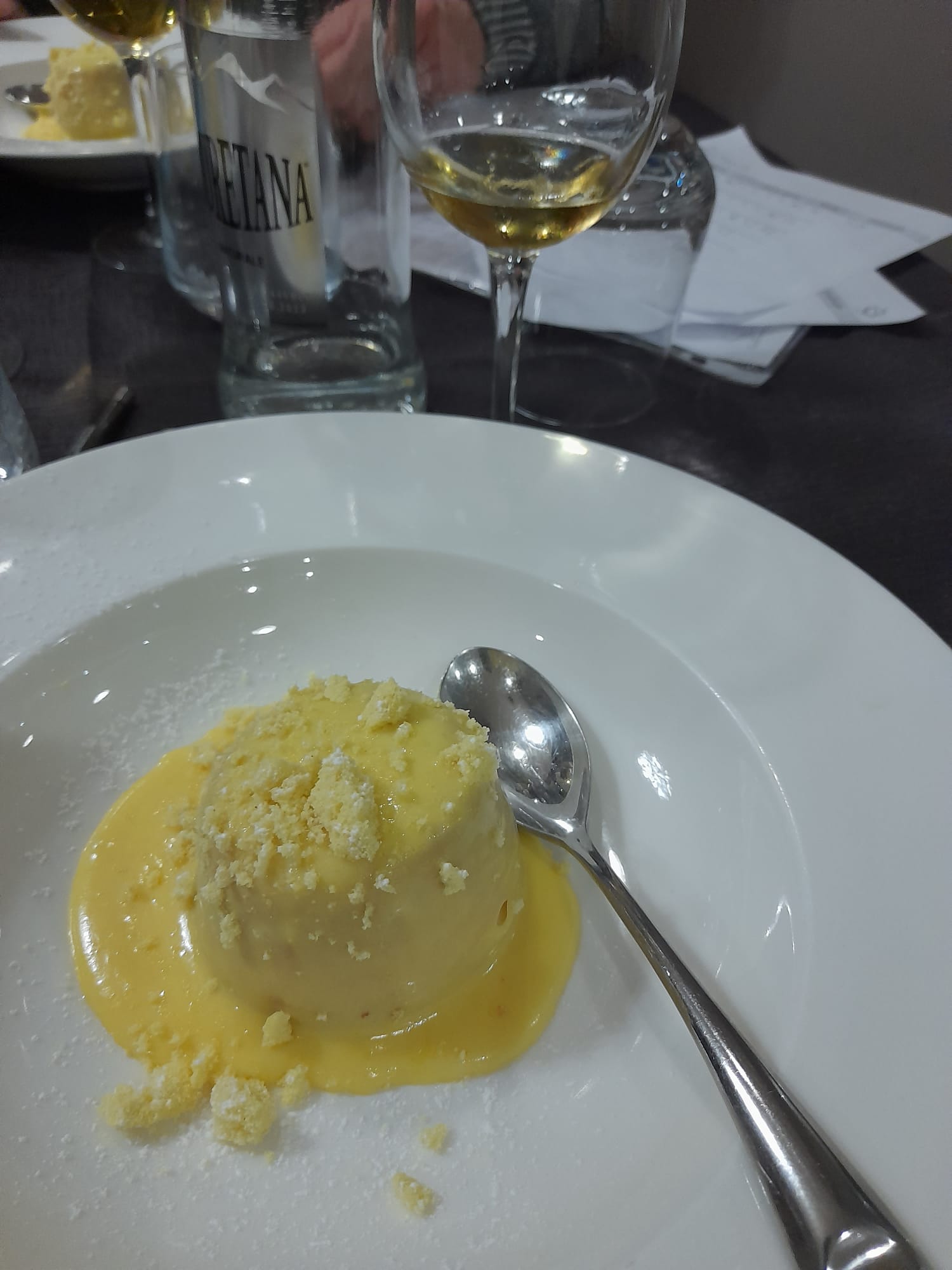 Arriva il dessert, la delizia al limone concepita dalla collaboratrice/pasticcera di Gianfranco, Loredana Presutti che ci “delizia” il palato con un’impronta piacevolmente selvaggia data da una crema stile vecchie nonne (di quelle decise dove l’uovo si sente) ed una percezione di limone netta ma i dolci dei ristoranti devono essere così anche perchè li si degusta DOPO un pasto ricco di sapori decisi e le nostre papille gustative sono quasi assuefatte ai sapori! Non ha preso voti alti a causa dei piatti precedenti ma a me è piaciuto molto e tra i dessert prodotti direttamente dai ristoranti della nostra zona, è indiscutibilmente il MIGLIORE!