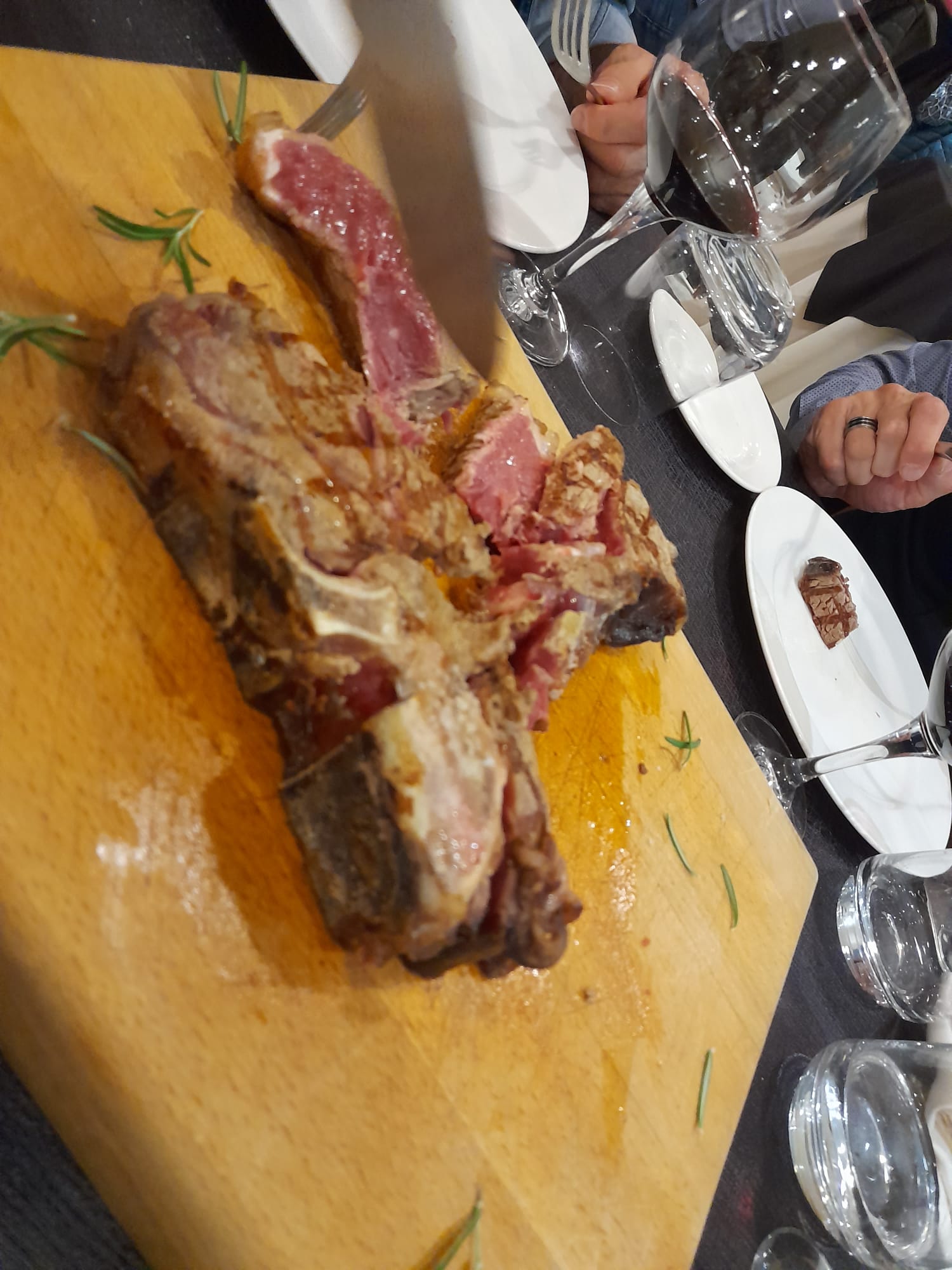 Gianfranco ed il suo team tutto al femminile (Loredana, Sara, Eleonora e la nuova arrivata Maria), da inizio alle “danze” con un corposo antipasto composto da una tartare di chianina “commovente sul lacrimevole”, un tagliere misto con finocchiona, salame di cinta senese e crostino nero con pecorino toscano a cui abbiniamo uno spumante metodo classico rosè sfacciatamente “muscoloso”, ricco e succoso ma anche con una lunghezza gustativa infinita; si capisce subito che non si tratta del solito pinot nero ma di un autoctono.