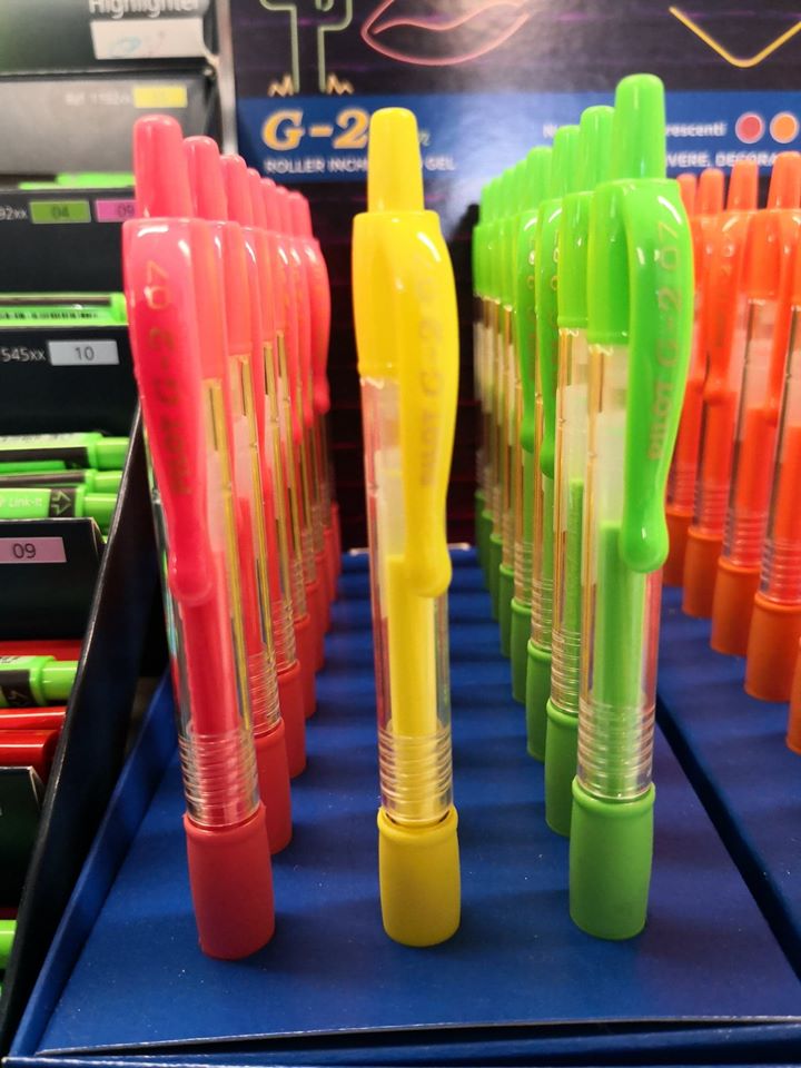 Supernovità le Pilot G2 al gel fluorescente per personalizzare i tuoi libri e dare un tocco di brio anche alle materie più pesanti.
