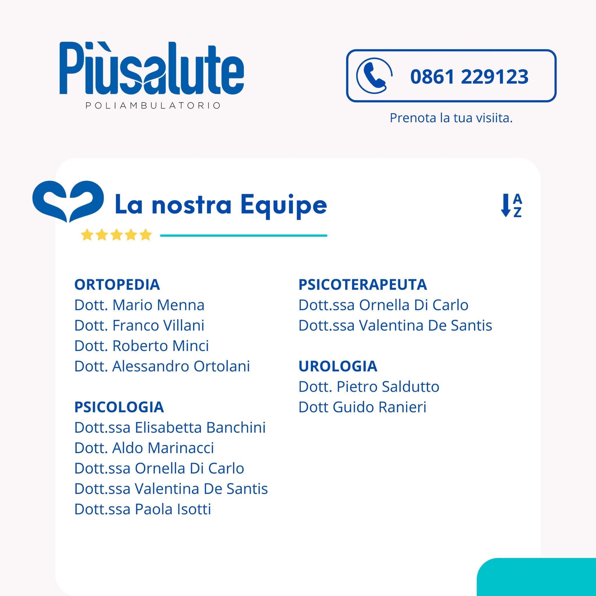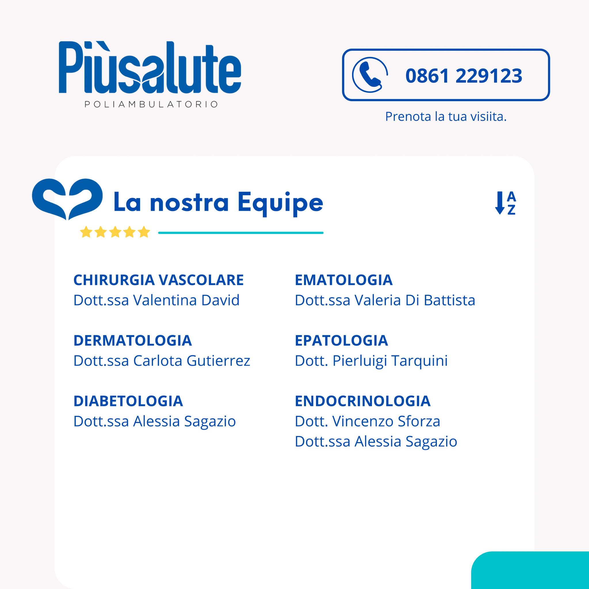 Ambulatorio Più Salute, centro medico completo per poter accedere a tutte le prestazioni specialistiche. Un’equipe medica di assoluta eccellenza, formata da personale medico con esperienza decennale nel loro campo di applicazione, per garantirvi un servizio medico di alto profilo.