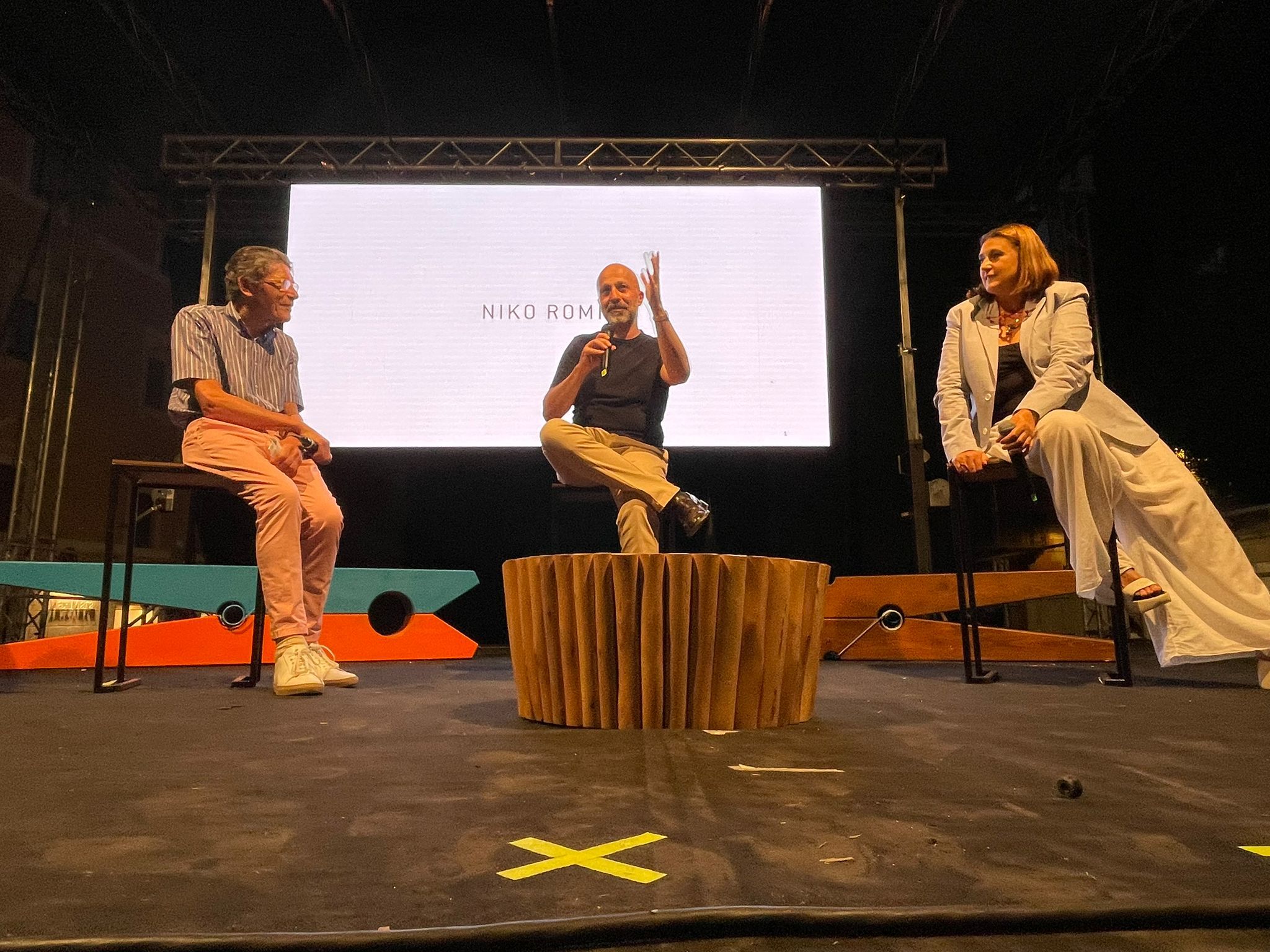 Romito è intervenuto sul palco insieme al produttore aquilano di salumi di pregio Mauro De Paulis e a cinque suoi ex allievi: Caterina Ceraudo (Dattilo, Strongoli), Alessandra Di Paolo (Futura, Chieti), Marco Cozzi (Spoon, Teramo), Antonio Palombo (Ardito, Pescara) e Alessandro Ruggiero (Basilikò, Paglieta).