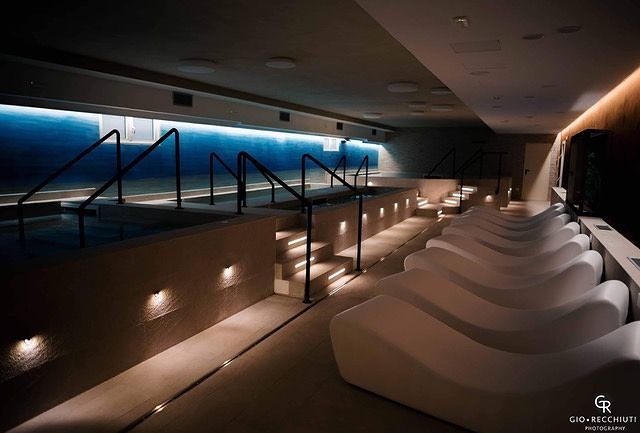il piano inferiore è dedicato al wellness: acqua, calore e riposo, allestimenti con moderne forniture per garantire i principi del corretto e completo percorso benessere.