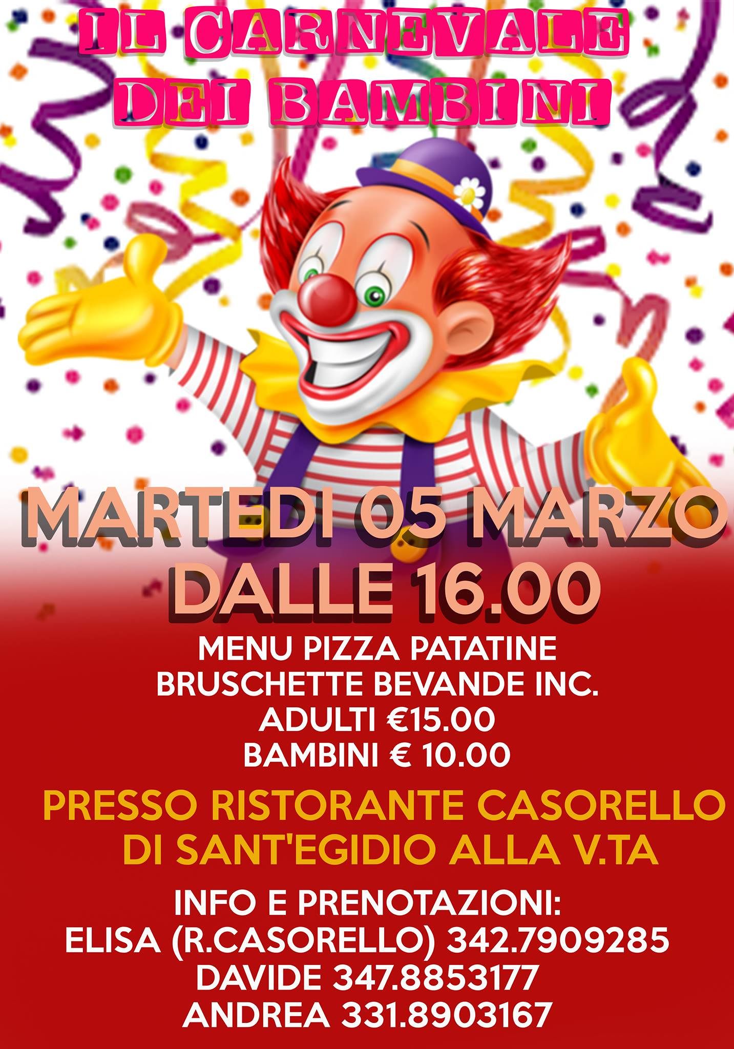 ? MARTEDI’ 5 marzo IL CARNEVALE DEI BAMBINI, con tanta animazione e belle sorprese!?