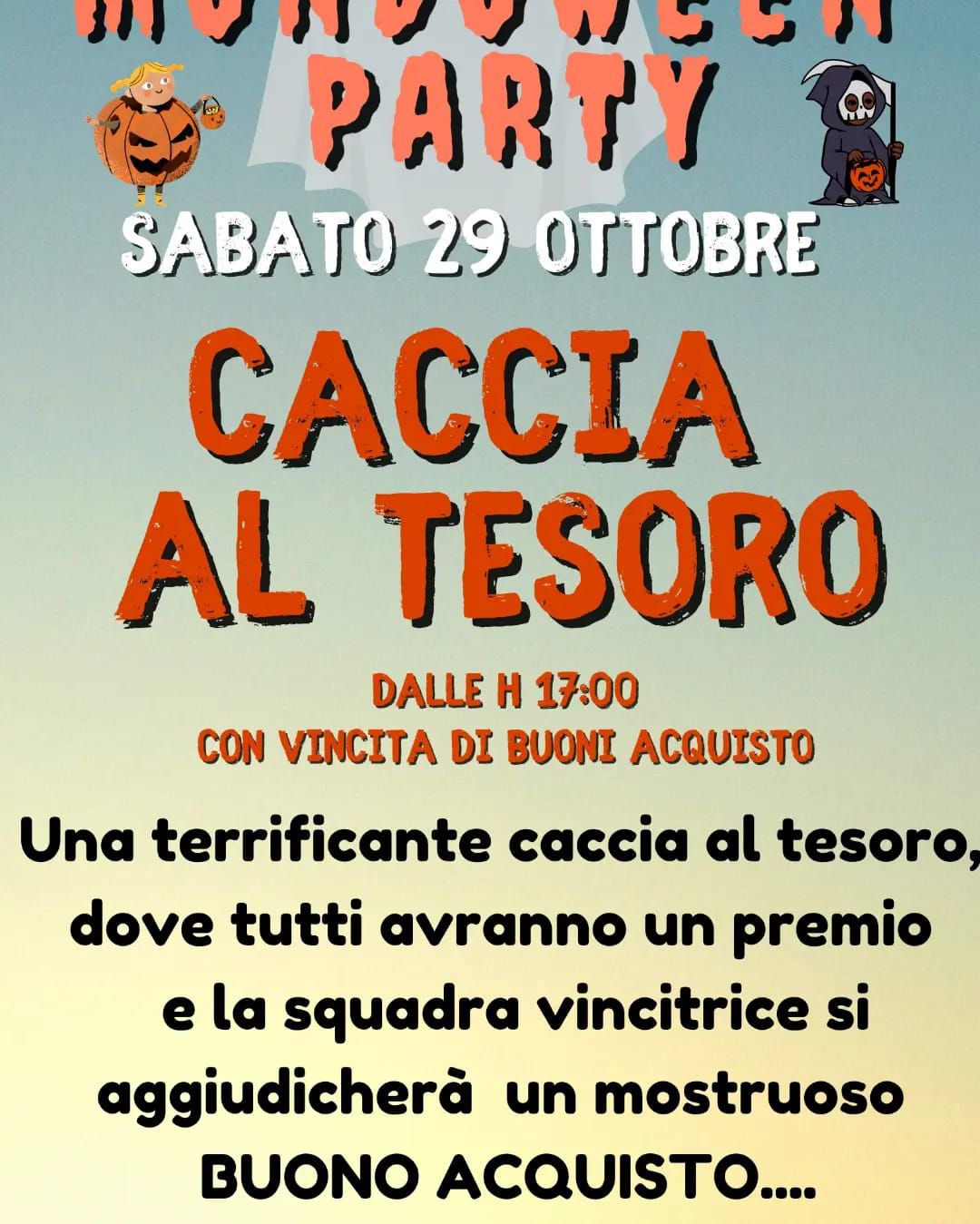 Dalle 16:00 alle 18:30, CACCIA AL TESORO. Per la squadra vincitrice un gradito buono acquisto.