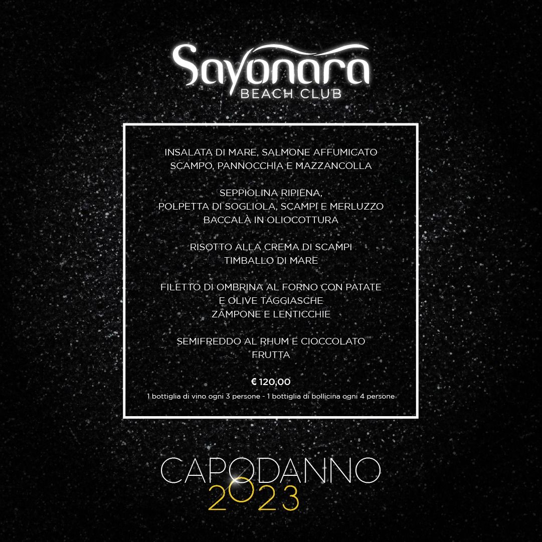 Una cena di Mare, ottima musica e divertimento tutta la notte, questo è il CAPODANNO Sayonara 2023.