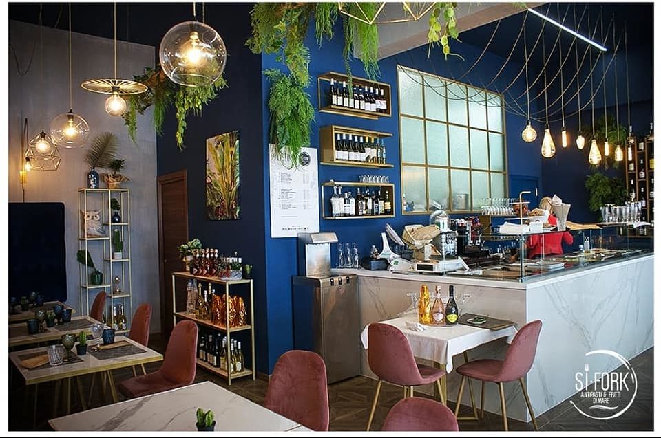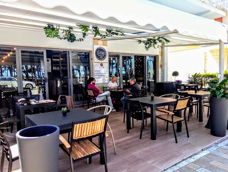 Un Locale elegante, contemporaneo rifinito di pregio, tavoli anche in esterno per gustare la migliore tradizione della cucina veloce di mare tutto pronto espresso; SI FORK sapori instancabili di un estete al mare; ad Alba Adriatica Lungomare Marconi Zona Pineta Sud