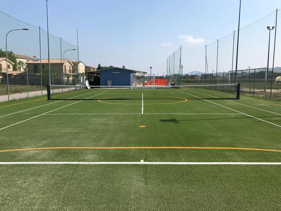 Il campo da gioco in erba sintetica è adatto sia per l’uso interno che per quello esterno ed è studiato per fornire lunga durata, un buon comfort e una alta qualità di gioco, non necessita di una manutenzione giornaliera; si può predisporre la superficie di gioco anche per sport quali tennis, pallavolo, calcio a 5, a 8 ed a 11.