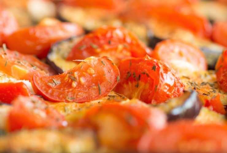 - Una volta pronti tutti gli ortaggi, bisogna prendere una pirofila e ungerla con dell’olio sul fondo per poi disporre le verdure creando degli strati distinti.