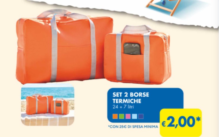Non una ma addirittura due borse termiche di due diverse dimensioni e disponibili in ben cinque colori uno più bello dell’altro. Come averle? Ti basterà semplicemente fare una spesa di minimo 25 euro e poi aggiungerne altri 2. Molto meno di quanto le pagheresti se le acquistassi in qualunque altro negozio.