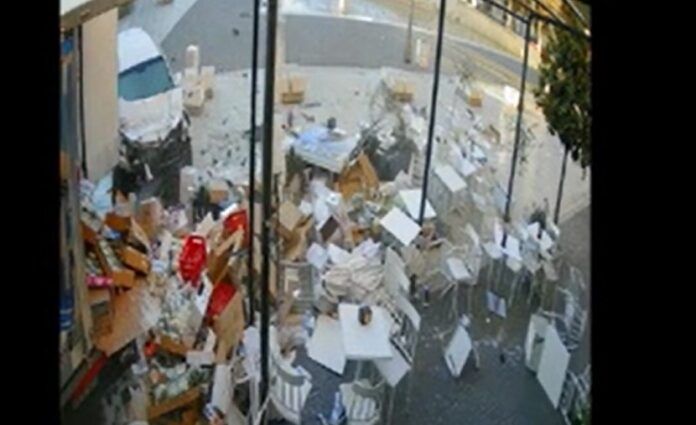 Avezzano. Con la sua auto finisce contro un furgoncino fermo per la consegna mattutina del latte. La vettura poi travolge anche i tavolini del bar, distruggendo anche panchine e arredi in piazza Risorgimento.