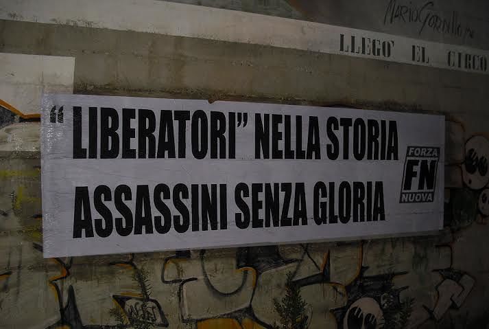 Striscione di Forza Nuova per l’anniversario dei bombardamenti di Pescara: “Liberatori assassini”